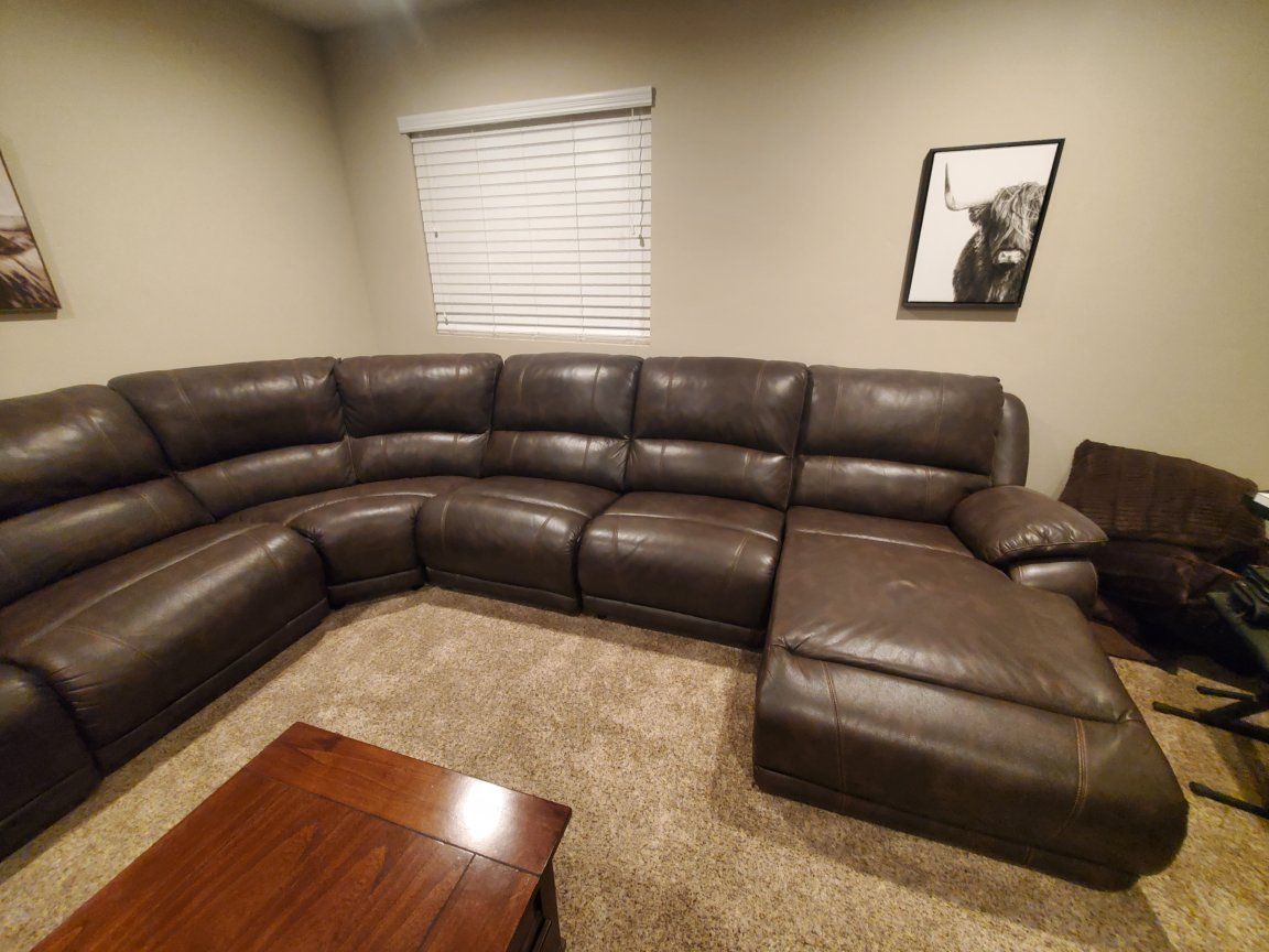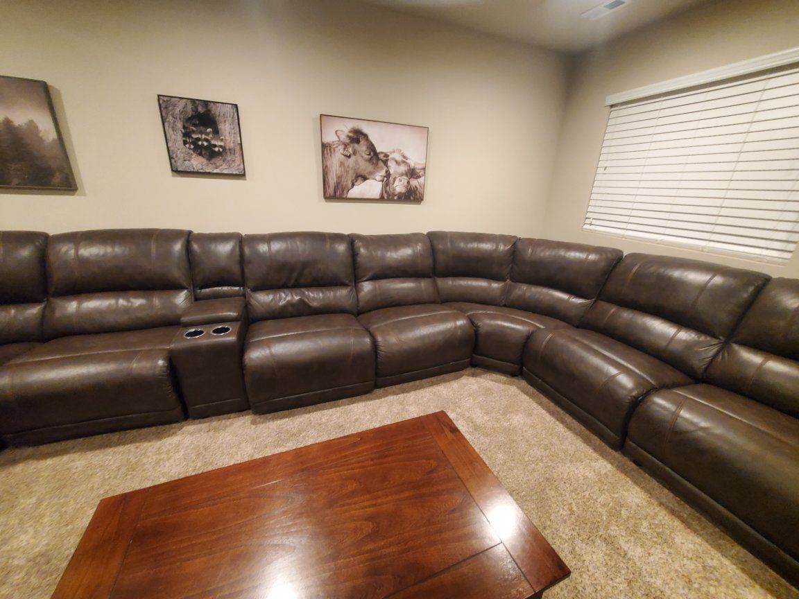 Modular pieces can be arranged to fit your space. Great for a basement theater room, family room, or large living area.
