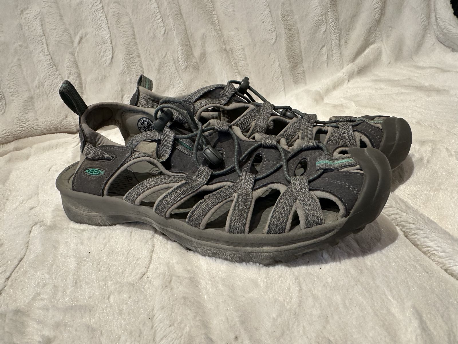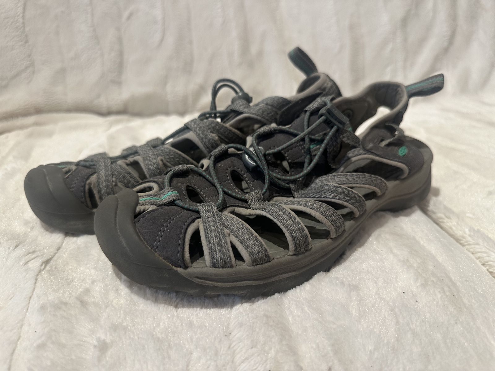 Keen women’s size 10 gray with teal trim slim fit waterproof, hiking sandals. These are in excellent condition, see photos for details. I take cash or Venmo, but cash is preferred. Text is best. 801-201-4446. Check out my other ads for additional sizes and styles.