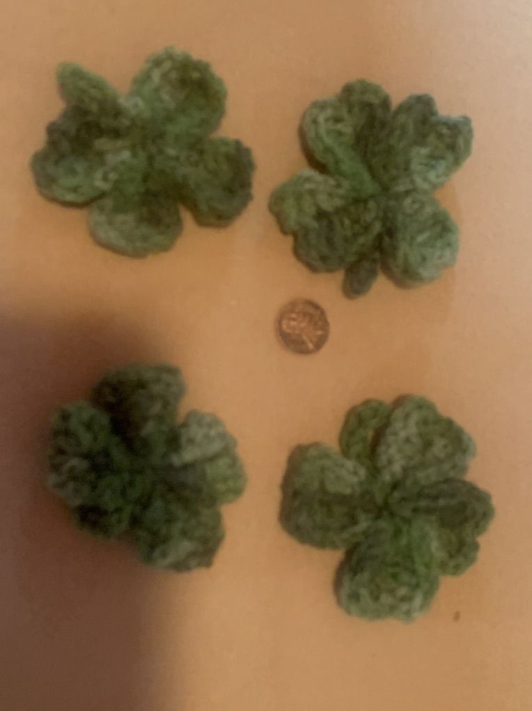 Hand made crochet clovers.