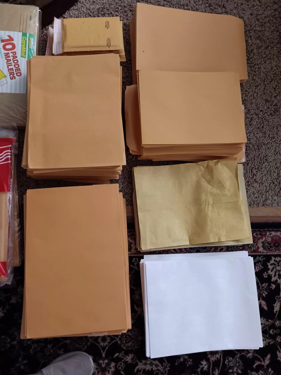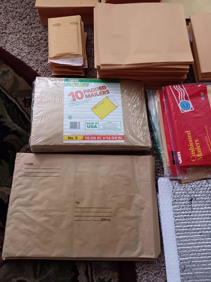 This listing is for many, many office supply business envelopes in various sizes. Some padded. Thes are free but the catch is you must take them all. I'm trying to downsize and just need to let them go. Bring boxes. There are that many! I'll gladly accept a donation but it's not required.