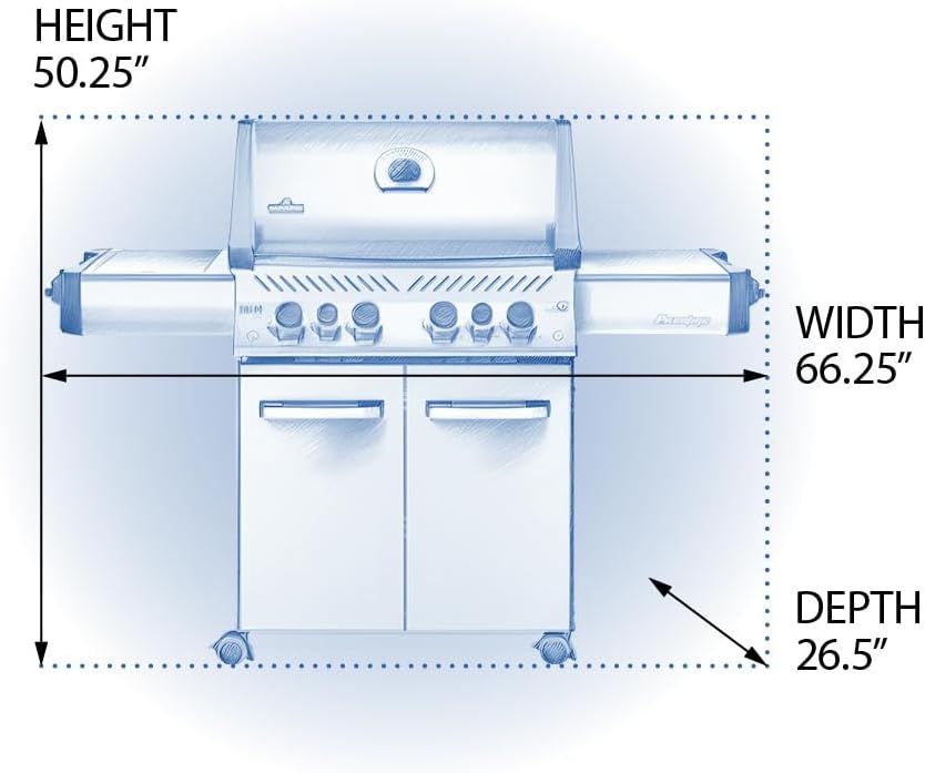The Napoleon Prestige 500 Natural Gas Grill with Infrared Side and Rear Burners is the total grilling package constructed from high-quality stainless steel, this cart model has the capabilities of a full outdoor kitchen. With four main burners, an infrared rear and side burner, this grill can cook meals using eight unique cooking styles. Grill for a crowd with a capacity for up to thirty hamburgers and up to eight more on the side burner. You'll know it's a Napoleon with the Iconic Wave cooking grids for those distinctive sear marks. Not just durable on the outside under the lid, is the same quality stainless steel used for the basin, tube burners, dual-level sear plates and cooking grids. Seven stainless steel sear plates provide extra surface area for any drippings from your food to vaporize, avoiding flare-ups. Never leave your barbecue on again the Prestige series grills come with the SafetyGlow Feature where the control knobs glow red when the burner is on.