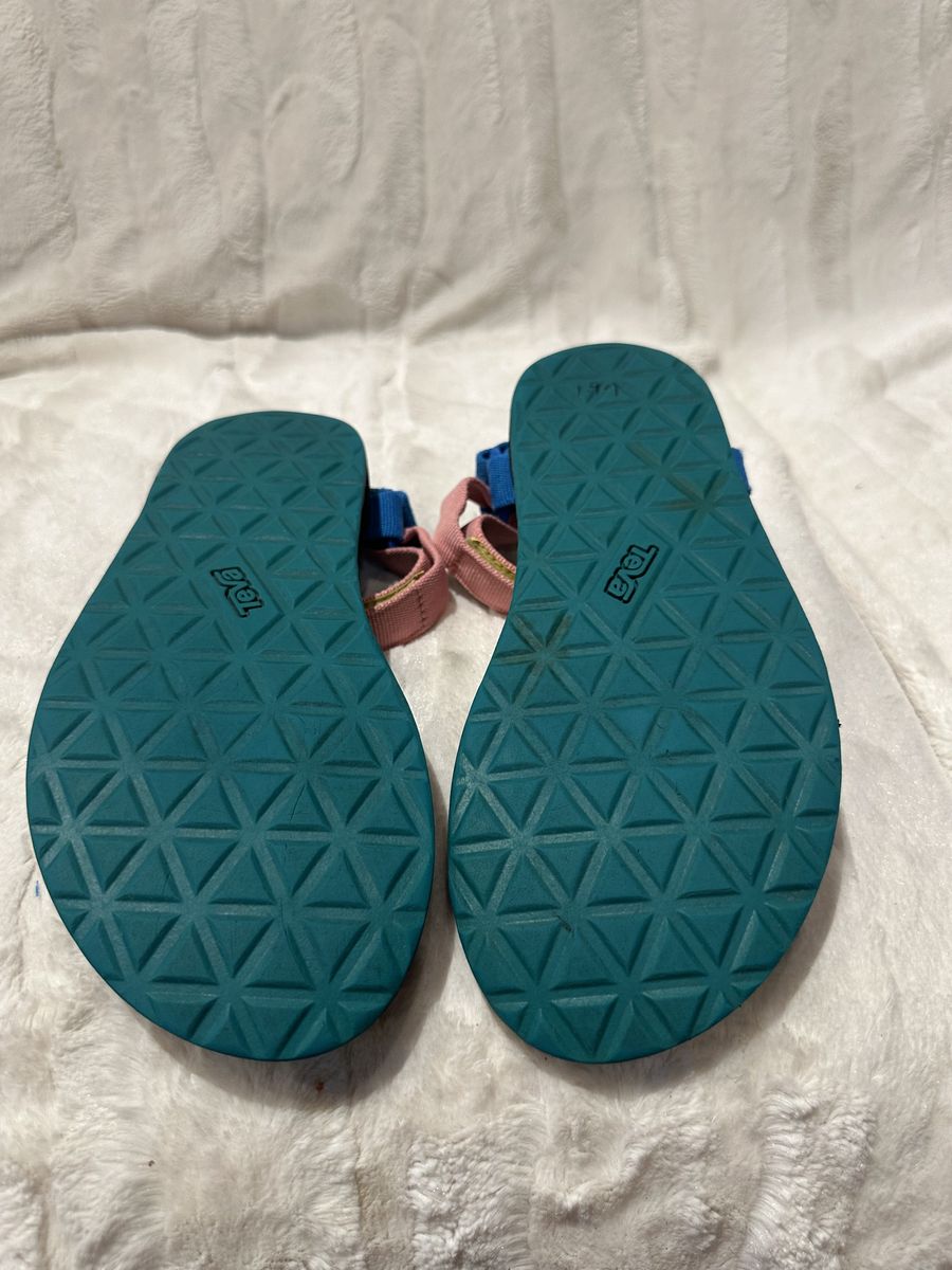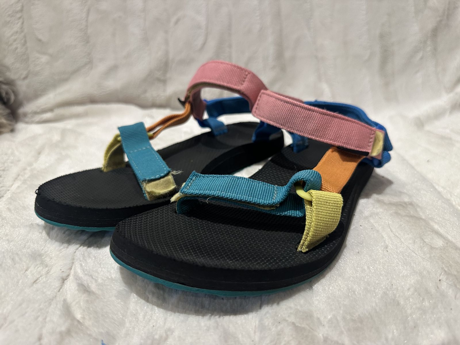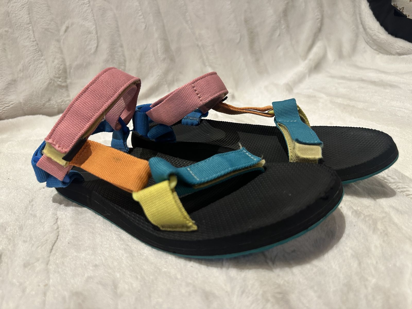 Teva women’s size 8 teal/orange/pink/yellow sports sandals. These are in good condition, see photos for details. I take cash or Venmo, but cash is preferred. Text is best. 801-201-4446. Check out my other ads for additional sizes and styles.