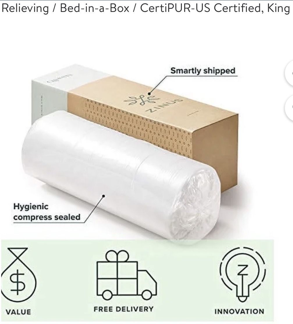 VenmoZinus King 12” Cloud Memory Foam Mattress Cloud Like Luxury, Cradling Memory Foam And Plush Microfiber. Supportive Foams 2 Total Inches Plush Microfiber And Foam Quilted Top , 2 Inches Conforming Memory Foam , 3 Inches Soft Comfort Foam, And 5 Inches Durable, High Density Base Support Foam , Ideal For Side Sleepers As Well As Back And Stomach. Highest Quality Foam Is CertiPUR US Certified For Durability, Performance , Comes ExpertlyPackaged. Brand New In Box Cash Preferred Will Accept Venmo Pick Up In Roy