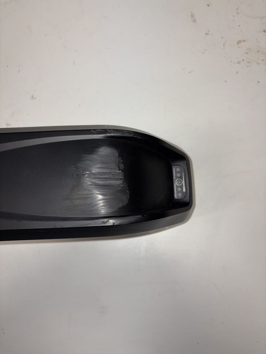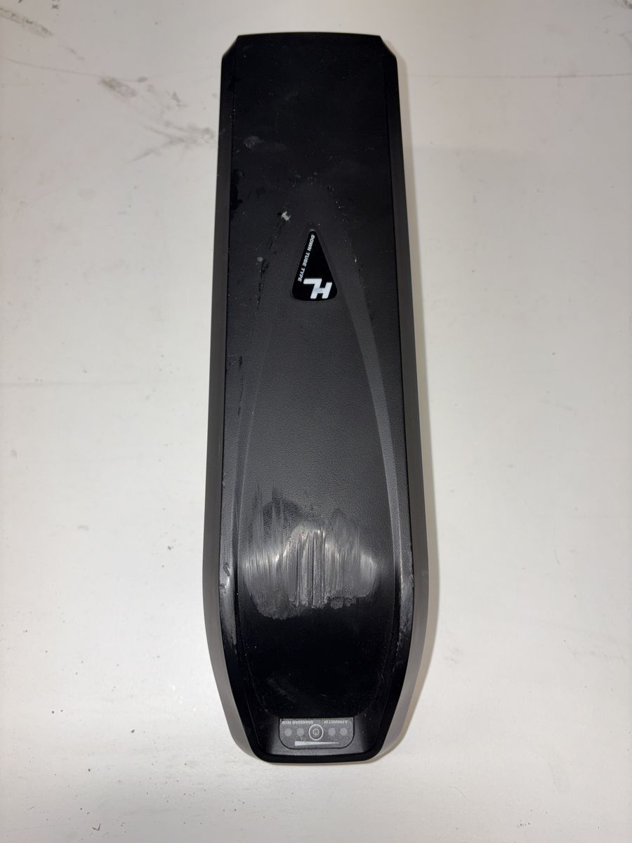The battery is nearly new and functions perfectly. It does have a cosmetic wear mark on the top of the case, caused by brief tire contact when test‑mounted under the downtube. This was only during fit testing—there is no damage to the battery, wiring, or performance. Can be used in a 48 volt system,
