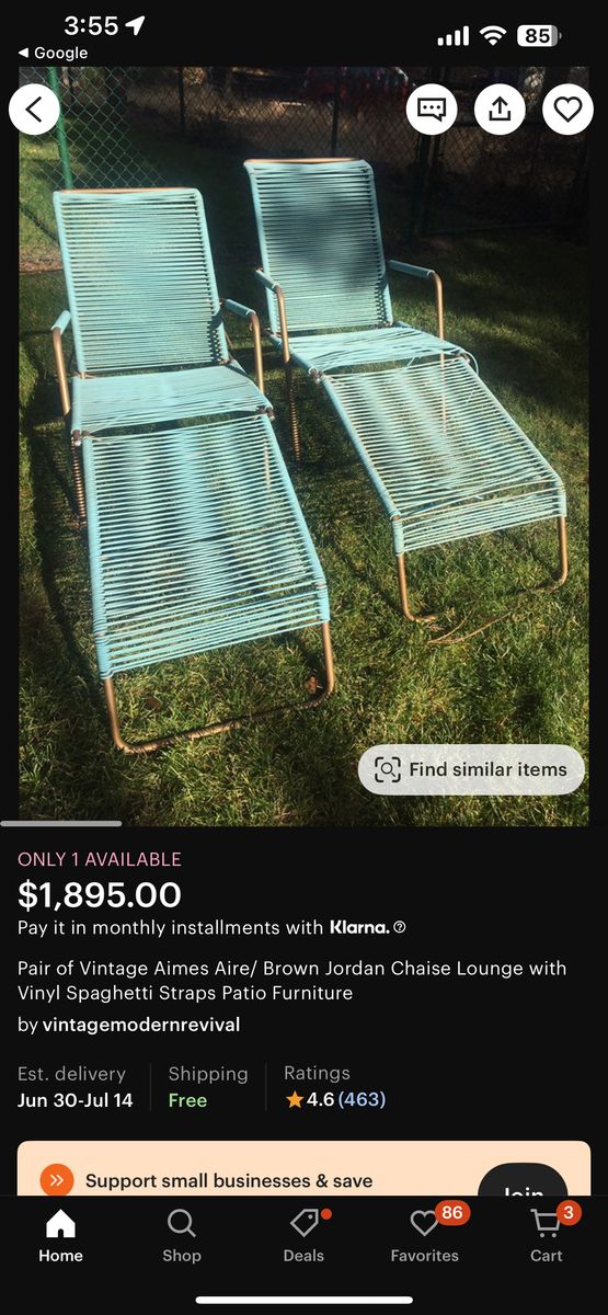 VenmoPair of vintage of Aimes Aire webbed lounge chairs. Amazing turquoise color webbing, with bronze-ish metal base. These are the most comfortable chairs, and super rare! The last two pics are other ads I found online of the same type of chair (for reference). Asking $989 for the pair, but am open to reasonable offers.