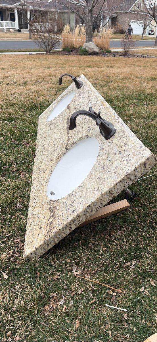 Backsplash didn’t survive the tear out, but you can try glueing the 4 pieces.