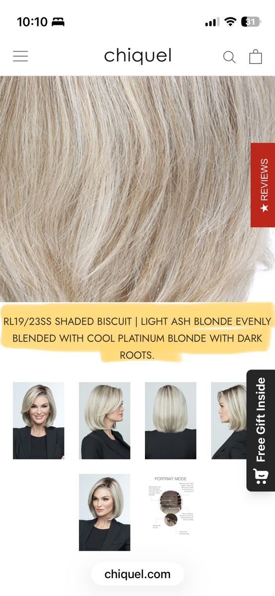 ZelleRL19/23SS SHADED BISCUIT | LIGHT ASH BLONDE EVENLY BLENDED WITH COOL PLATINUM BLONDE WITH DARK ROOTS.