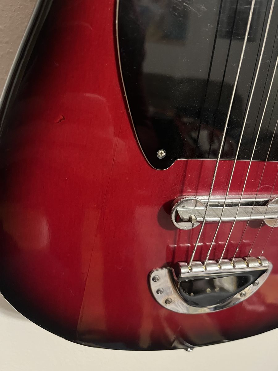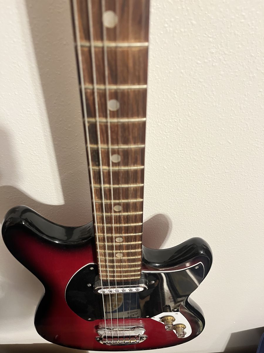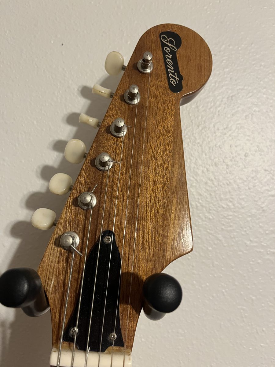 VenmoLorento electric, single body guitar. This is single pickup. 2 colors, scarlet and black. Some wear over the years.