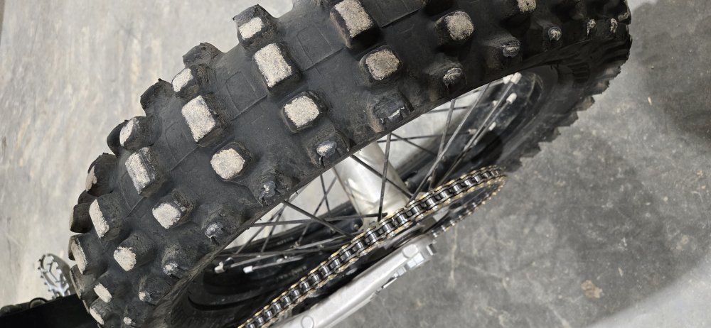 It has the original tire on it right now, slightly worn but still plenty of life left. Oil and filter changes every 4-5hrs, has less than an hour on previous oil change. Rear shock and forks are in great shape. New D.O.D. chain 10 hrs ago. Lloyd's Performance shorty pipe, sounds amazing, adds a little more power on the top end, especially in 4th and 5th gear.