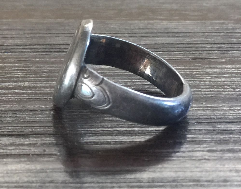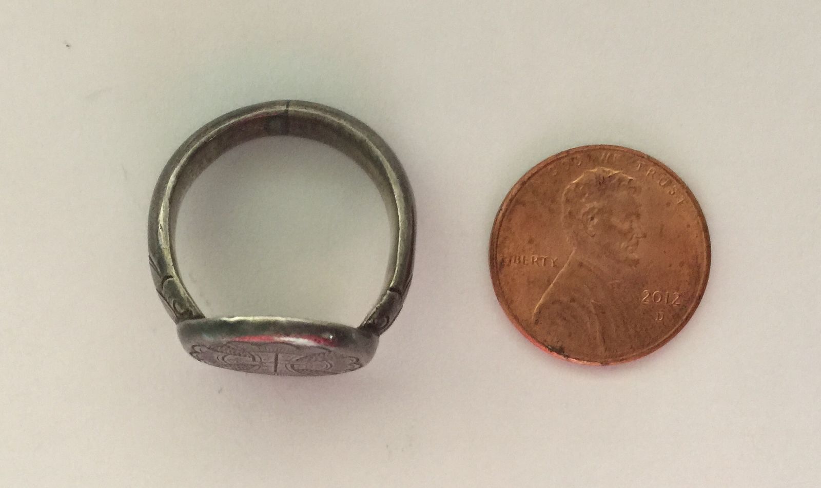 ApplePayOxidized sterling silver signer ring with engraved cross design.