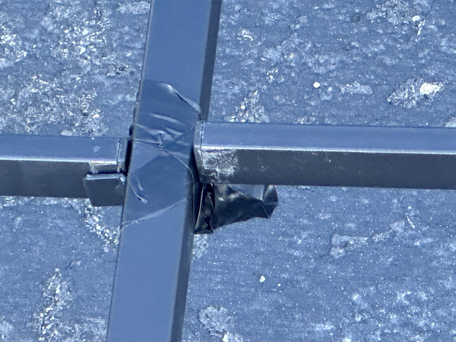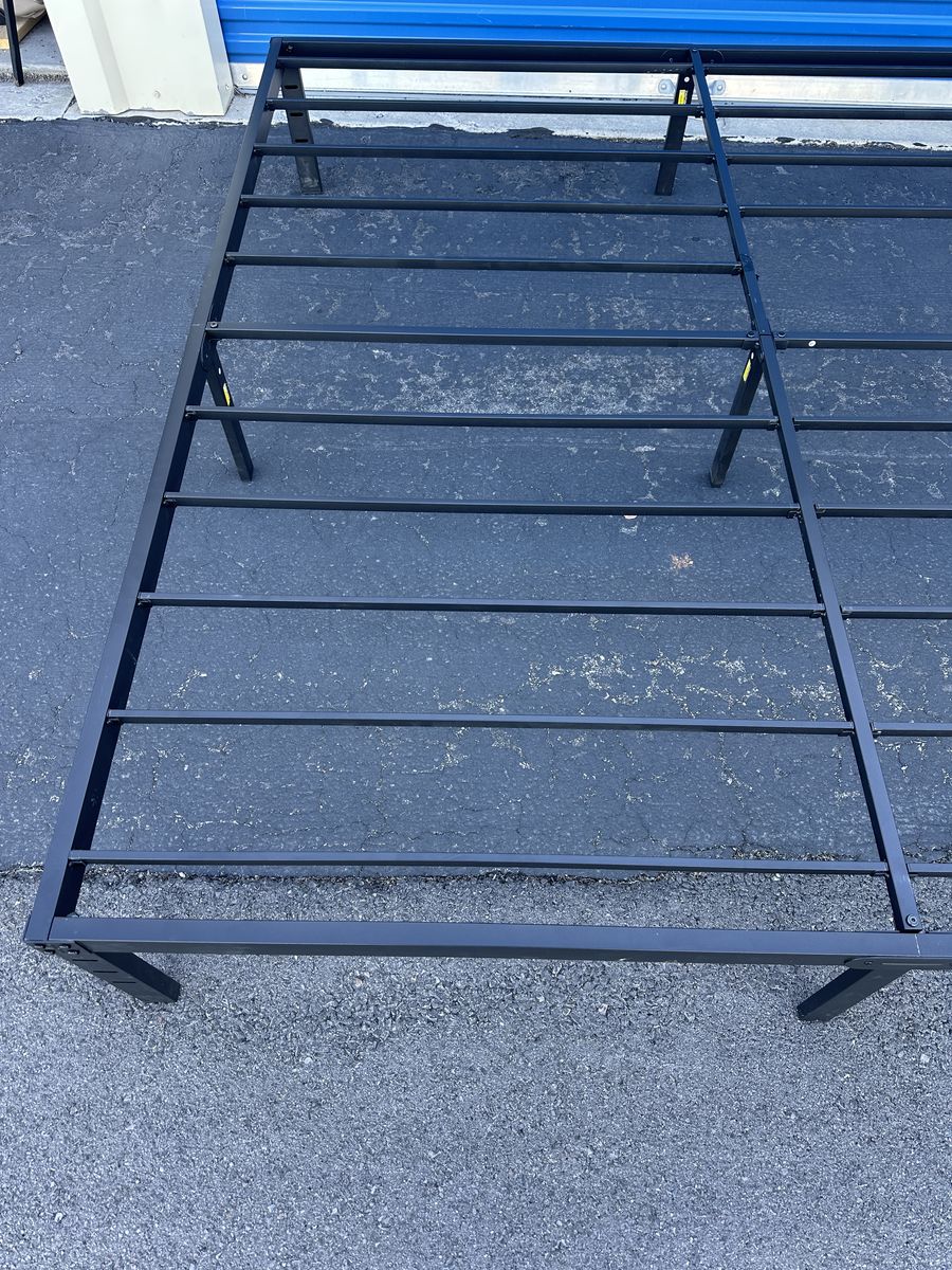 Check out this king metal platform bed. Overall, it is in good condition. There might be some imperfections from moving, a few scratches and signs of use, one of the bars needs to be repaired, signs of use, etc.