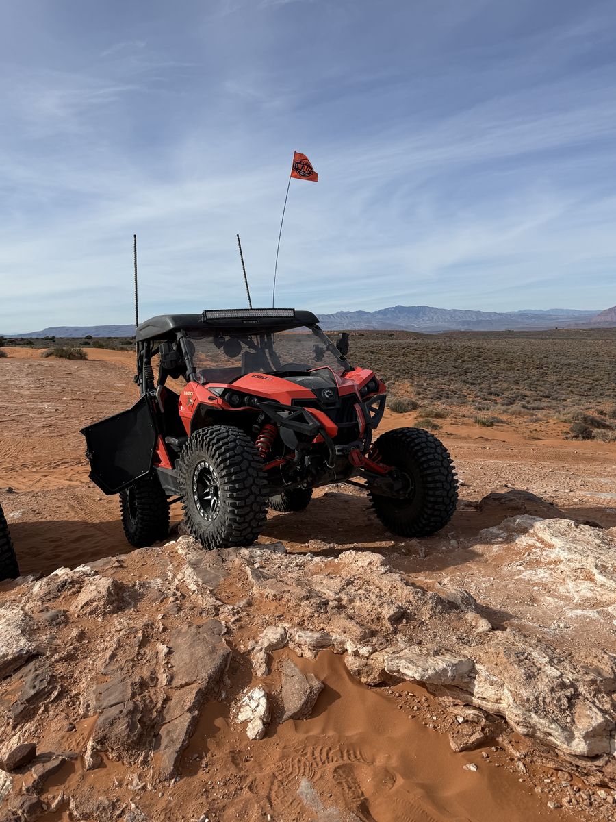 This machine has 17” ground clearance New belt 350 miles ago 32” Rockzilla tires if you know you know Great for all terrain mud, Sand, but made for the red Rocks. I run them at 8lbs PSI and they are fantastic. I have them on my KRX as well. 2” lift Full windshield plus a 1/2 windshield I’ll throw in. Extra belt $200 value included 5,500 lbs badlands winch with Synthetic line control on the dash and a corded remote for the front. pack out plate and one large pack out box included room for more boxes Lighted LED whips with remote Light bar in the front and two rear facing led lights to see behind you at night Rear view mirror Tough American Flag side mirrors