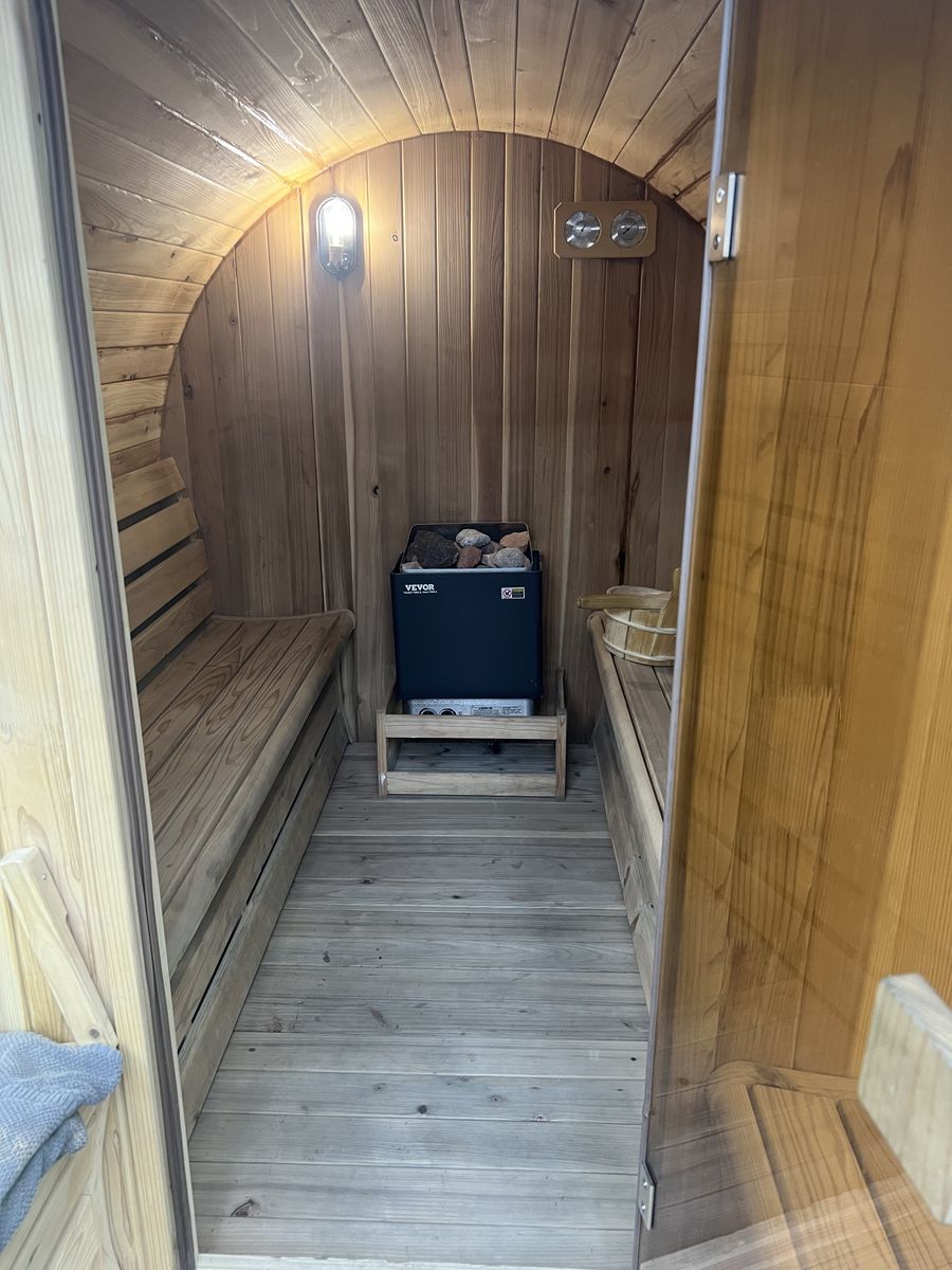 Selling a spacious 4-6 person sauna with a powerful 6kW heater. Everything works perfectly and heats up quickly. This unit has been used fewer than 10 times and is in excellent condition.