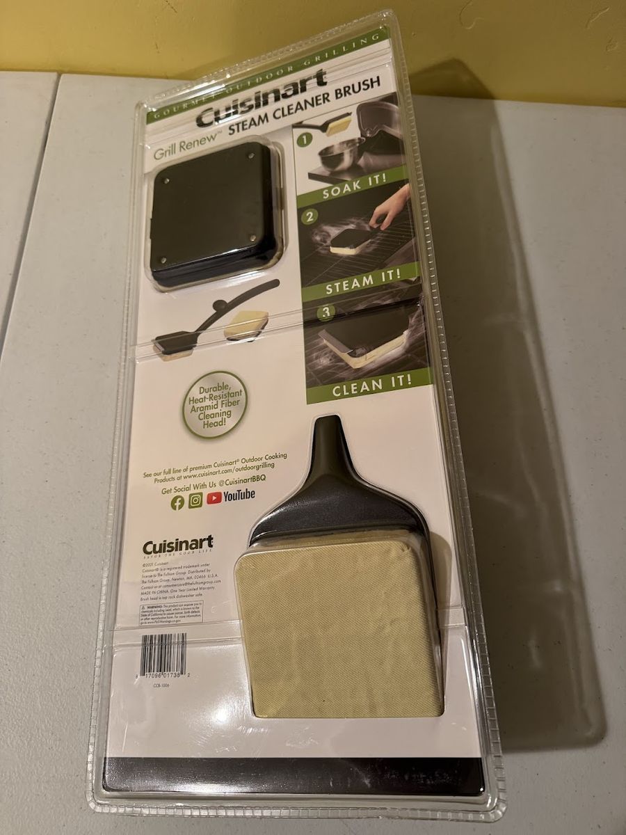 CashAppBrand new Cuisinart Grill Renew steam-cleaning grill brush, never used and still in original packaging. Includes bonus cleaning head. Uses steam for safer, bristle-free cleaning. Brand new