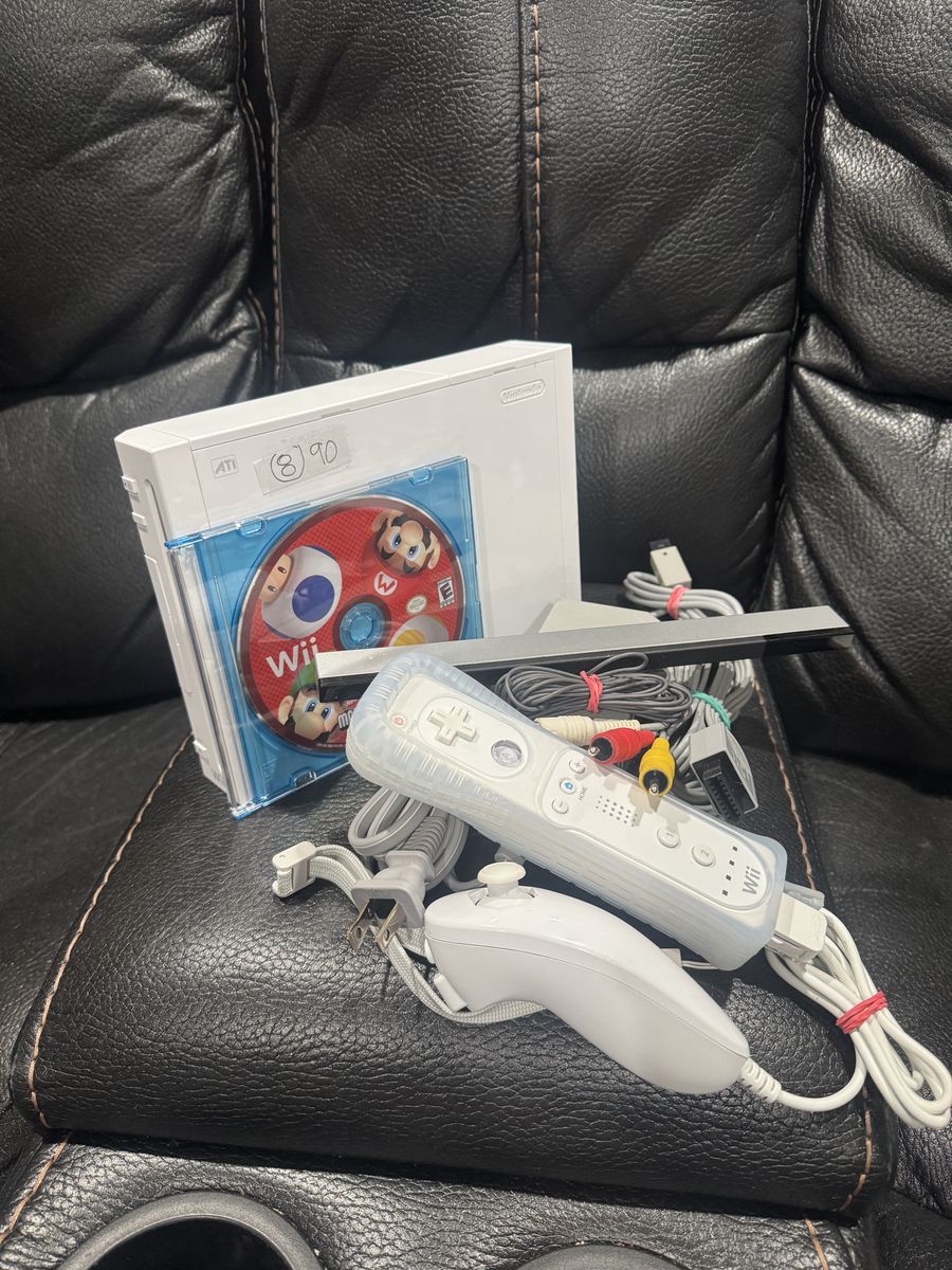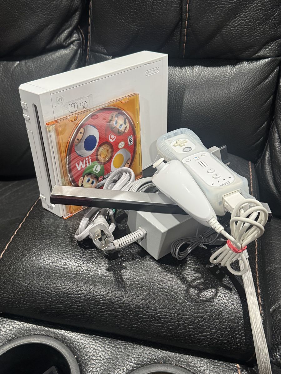 Each includes Av cord Power cord Remote Nunchucks Sensor bar Mario bros game