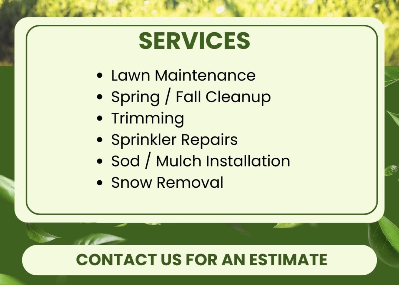 Contact us for any lawn care needs! We count with years of experience and take pride in our work.