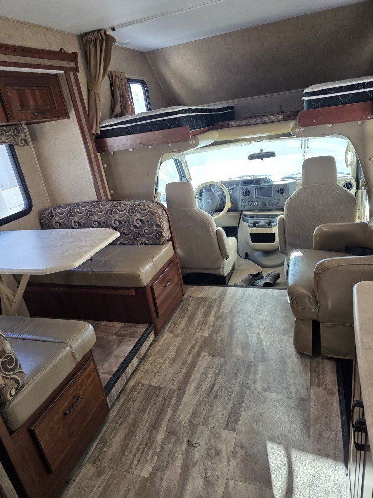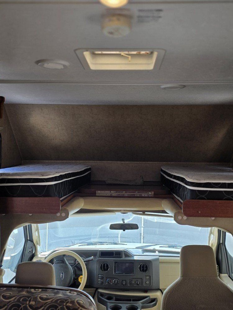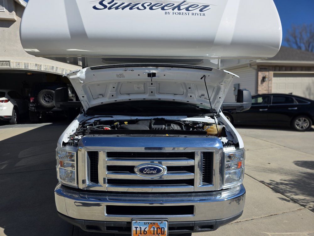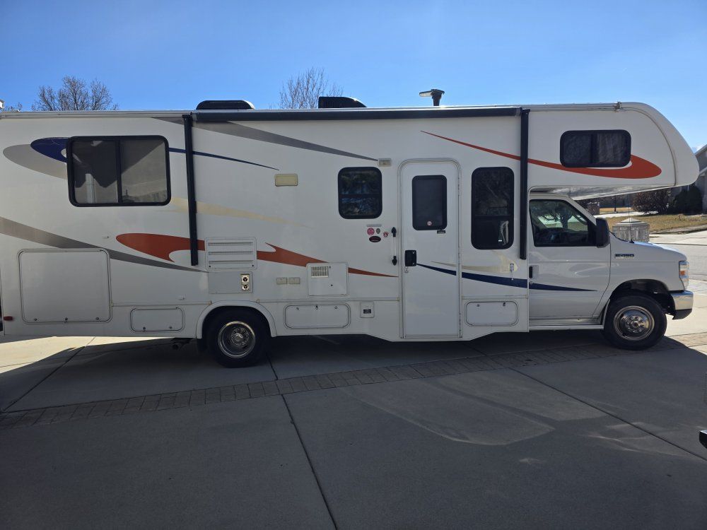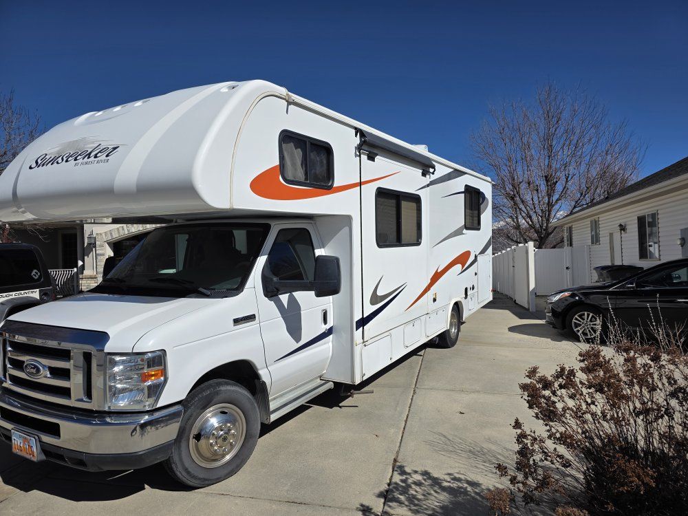 This is the perfect size (28') Motorhome. Sleeps 5 and has a very comfortable queen size bed and separate bedroom. We chose this size RV because anything longer is not allowed into Nat'l Parks. It has an ideal floorplan and a beautiful interior with a nice slide in kitchen and galley. We also chose the upgraded "Artic" package model Sunseeker because it came with extra insulation and has heat vents/ pads around all the water pipes and dump valves underneath the coach to keep them from freezing in winter. It also has Firestone's "Ride Rite" adjustable rear airbags to allow you to level up your load and provide a smooth ride. We just installed last fall an upgraded Amish made "DC" fridge and 2 Solar panels. We also installed a MAXAIR Fan with remote control in vent above the bed. The underneath storage capacity is amazing and more spacious than larger Class C's The RV Chassis is the E450 with V-10 Triton engine. It has 56,200 miles and has been well maintained.