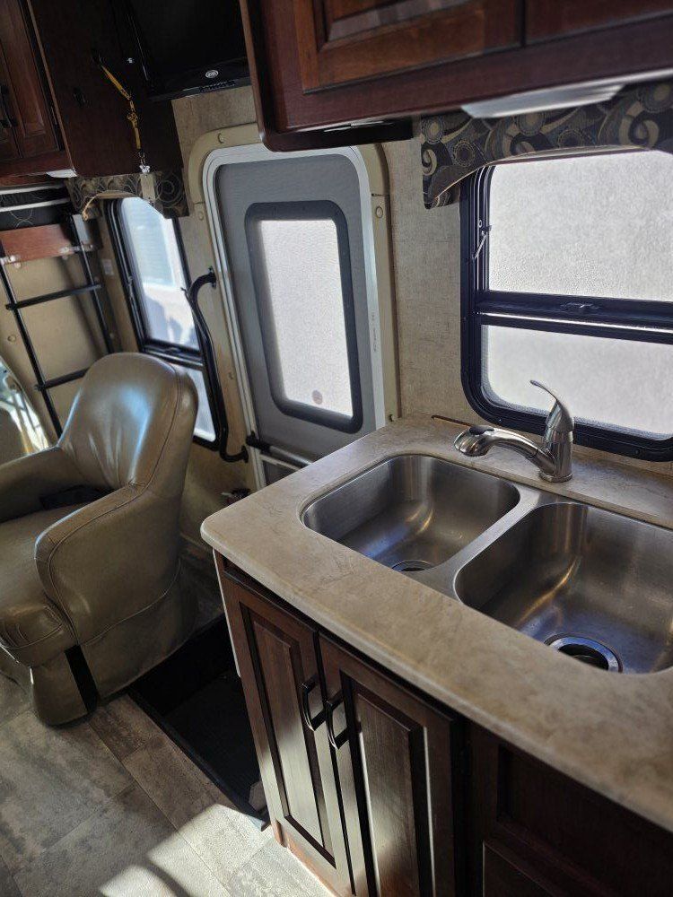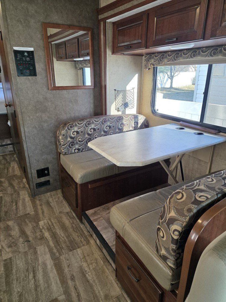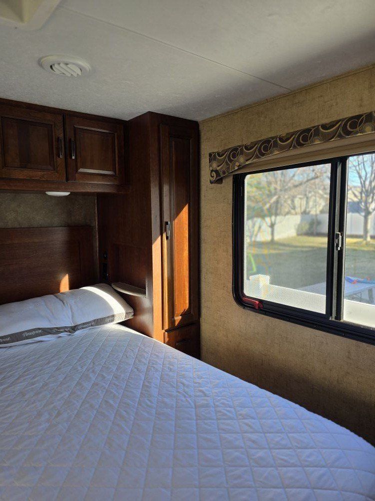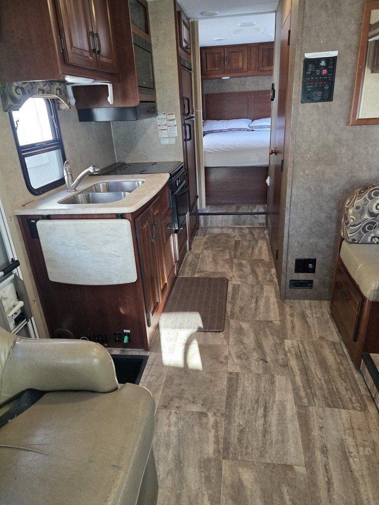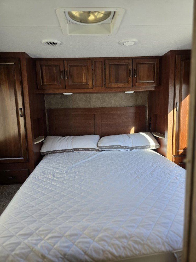 This is the perfect size (28') Motorhome. Sleeps 5 and has a very comfortable queen size bed and separate bedroom. We chose this size RV because anything longer is not allowed into Nat'l Parks. It has an ideal floorplan and a beautiful interior with a nice slide in kitchen and galley. We also chose the upgraded "Artic" package model Sunseeker because it came with extra insulation and has heat vents/ pads around all the water pipes and dump valves underneath the coach to keep them from freezing in winter. It also has Firestone's "Ride Rite" adjustable rear airbags to allow you to level up your load and provide a smooth ride. We just installed last fall an upgraded Amish made "DC" fridge and 2 Solar panels. We also installed a MAXAIR Fan with remote control in vent above the bed. The underneath storage capacity is amazing and more spacious than larger Class C's The RV Chassis is the E450 with V-10 Triton engine. It has 56,200 miles and has been well maintained.