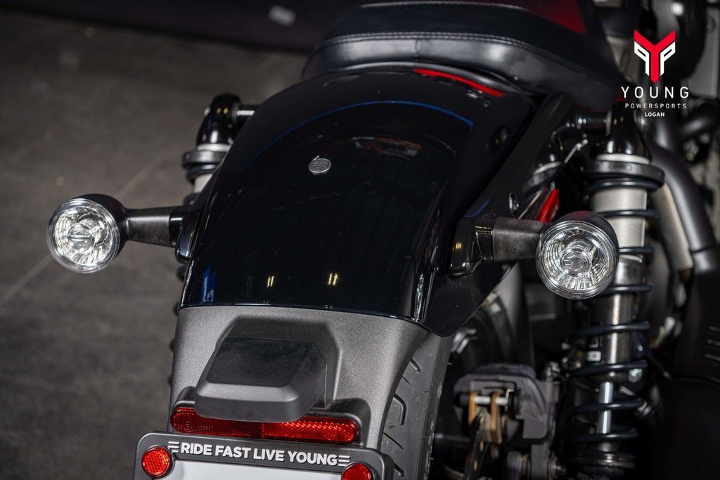Modeled after a previous Sportster chassis, Nightster features exposed dual rear shocks that provide a critical style line at the rear of the motorcycle.