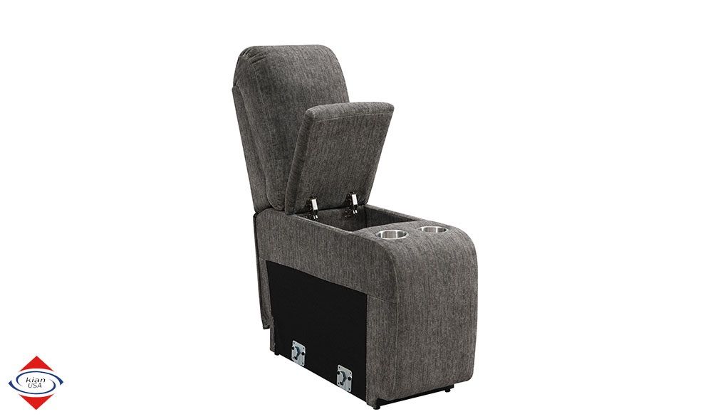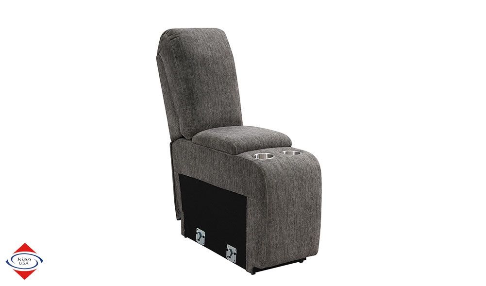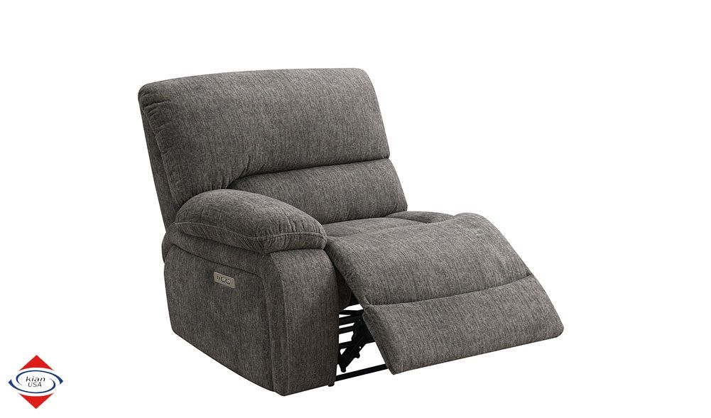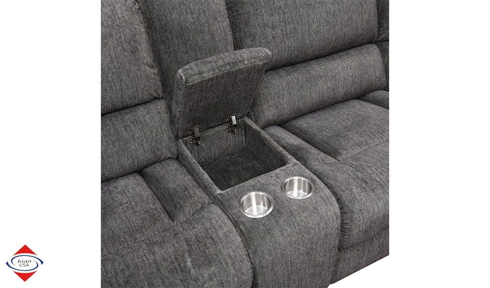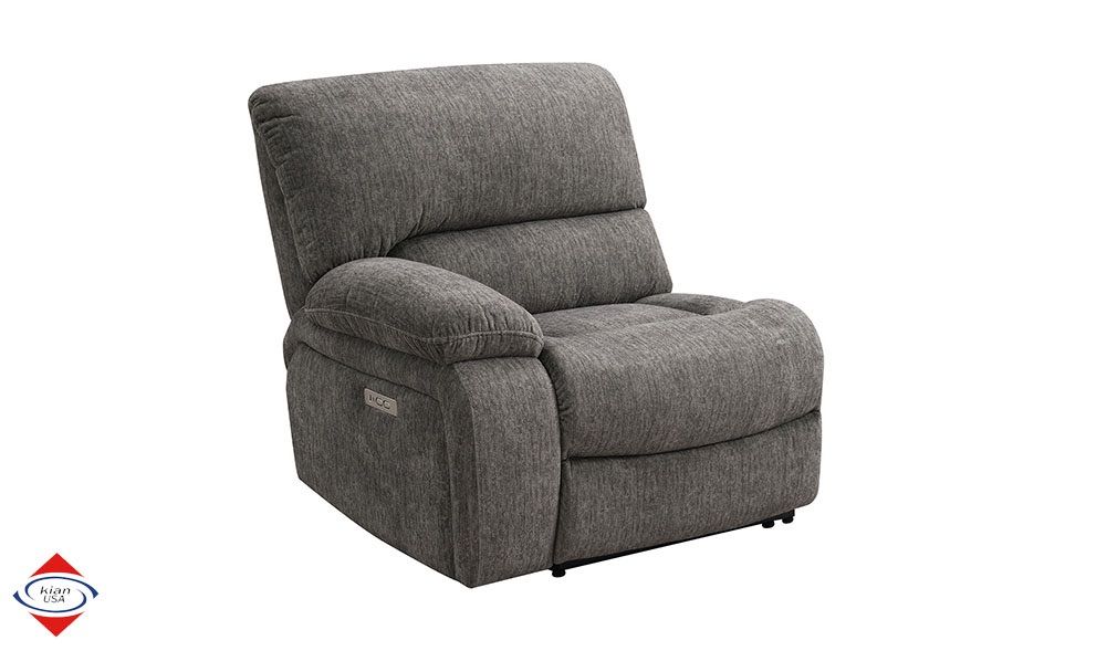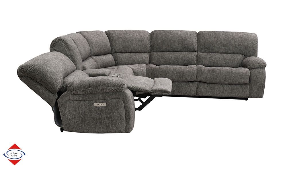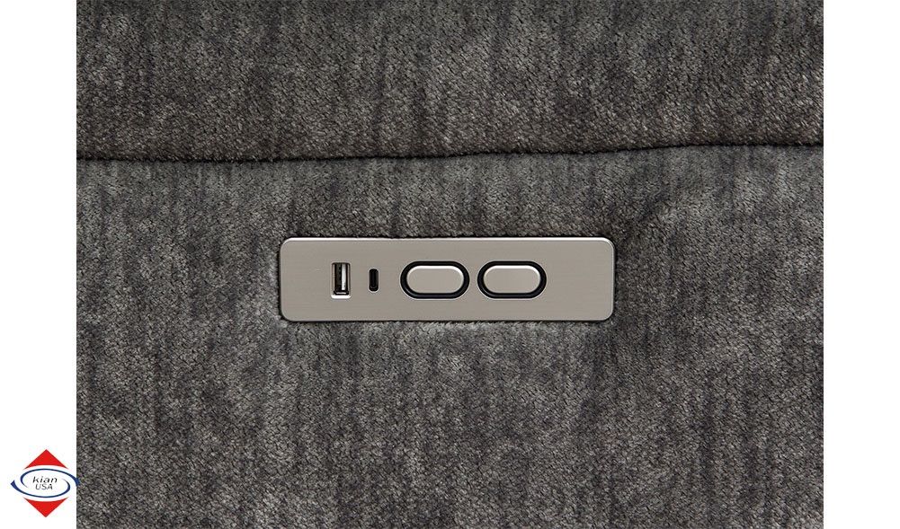 ApplePayBeautiful Grey power motion sectional. Three power motion seats. Soft polyester fabric. Stainless steel cupholders in the console. USB port for charging. DIMENSIONS: 9.5x10.5L x 36D in seats 46D in wedge x 42H $1850