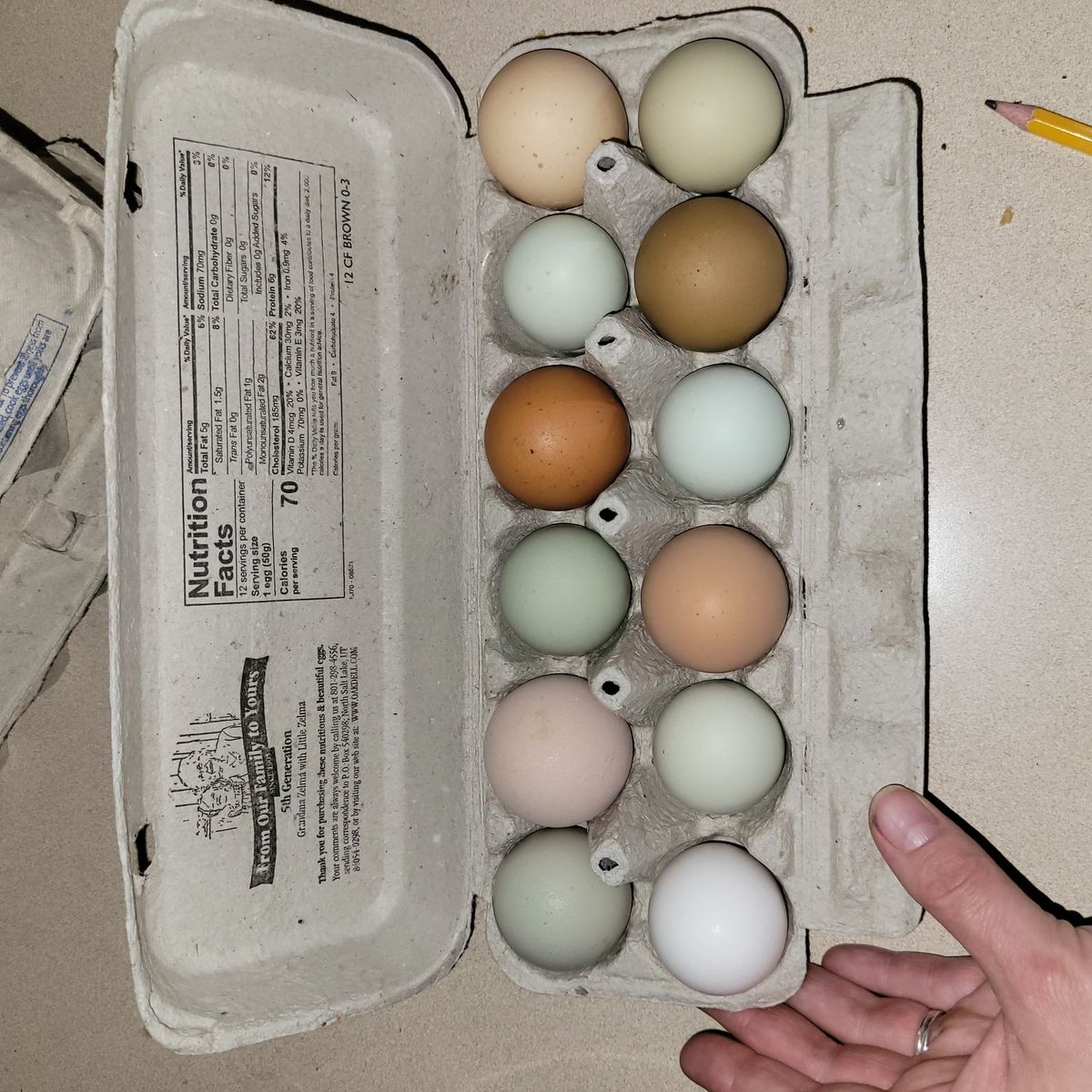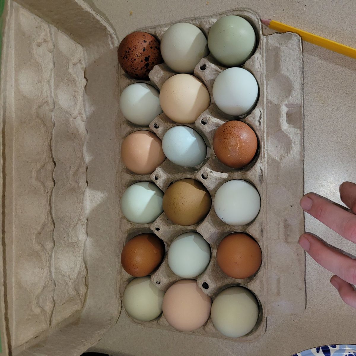 Delicious farm fresh eggs available! Much more nutrient dense and tasty than your average store bought eggs! My hens free range 2-3 times a week on our 3 acre lot. Are fed fresh table scraps and treats! & their feed is from a local mill in Spanish fork!