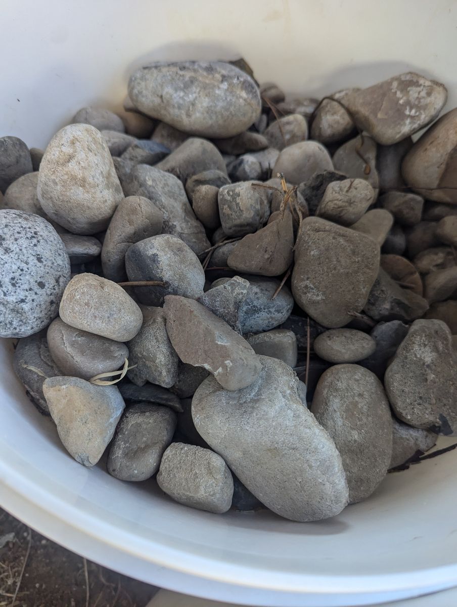 Buckets and boxes of treasures for your landscaping needs. Will bring right to your vehicle for easy loading. Been saving these as we've been digging, years of rocks ready to adorn your yard. Must go by the weekend; husband wants them gone. Text is best. Various sizes; mostly sorted