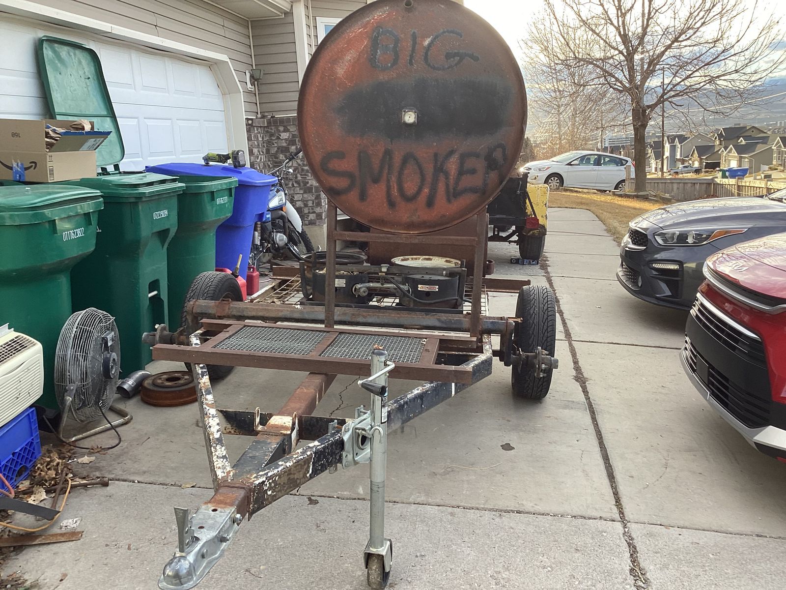 VenmoI started building a trailer mounted smoker a few years ago for a friend. He ended up telling me he changed his mind. So I'm trying to just sell it for what I have into it. 250 bucks. It will make a good little utility trailer. can finish making a smoker.