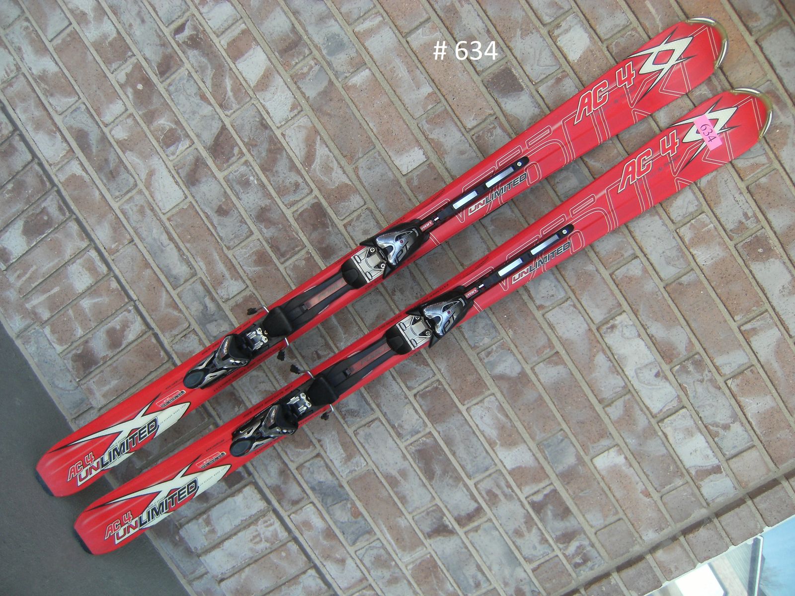 165CM (163), VOLKL AC 4 UNLIMITED, ALL MOUNTAIN, EXPERT SKIS, RED, TIP-WAIST-TAIL: 125-82-110, W/ MARKER MOTION iPT BINDINGS DIN 3-13, FITS MOST BOOT SIZES, EXCELLENT CONDITION ITEM 634 $89
