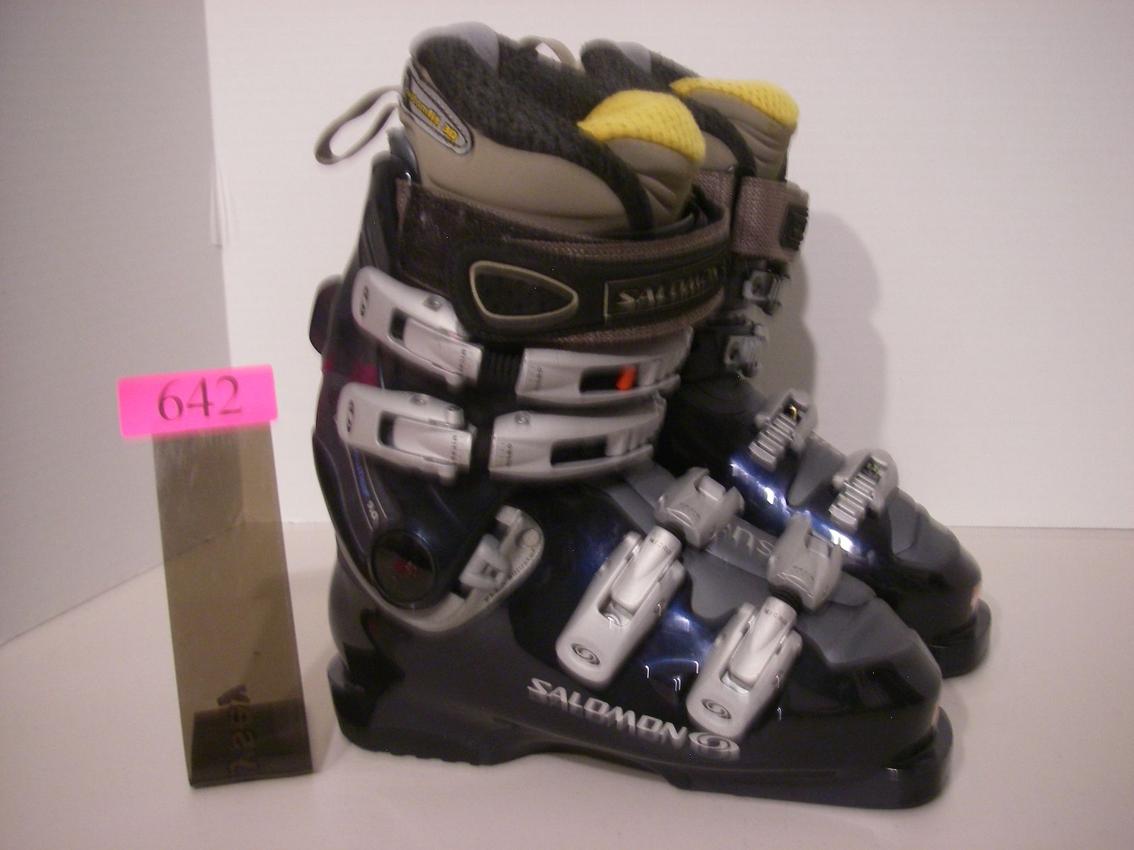 MONDO 23.0 WOMENS US SZ 6 SALOMON EVOLUTION 9.0, SKI / WALK MODES, FLEX 60-70 NAVY BLUE 276 MM BSL XLNT CONDITION ITEM 642 $59