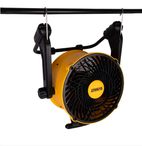 The Dewalt 16 in. Benchtop and Hanging Fan is ideal for garages, basements, or workshop and tilts a full 360°. Sturdy handle allows for easy transportation from one location or workspace to another. Its compact size and lightweight design make it perfect for use on a benchtop or table, while its included hanging hardware means that you can easily mount it on a wall or ceiling for maximum convenience.