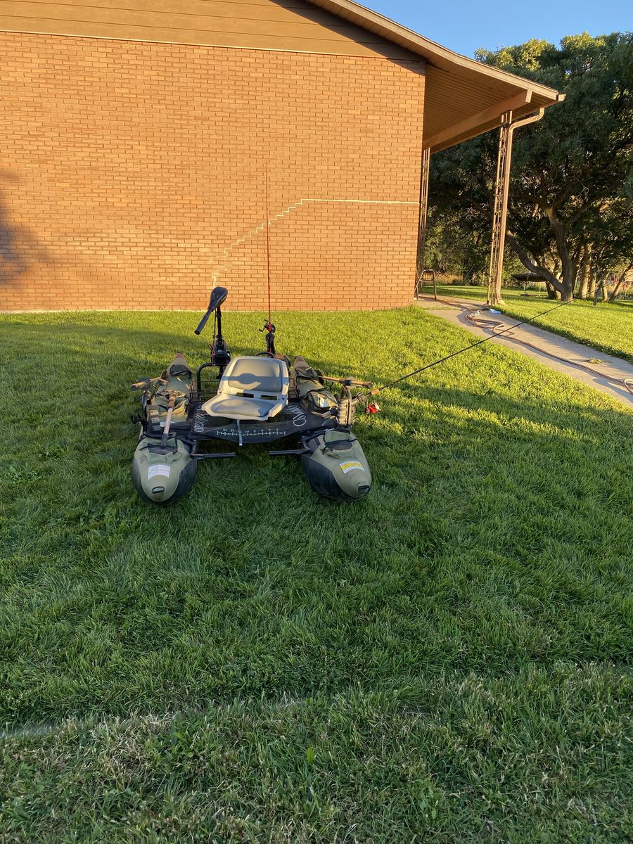 VenmoI am selling a used Colorado Classic Accessories inflatable single person pontoon boat. I've had it for several years and caught lots of fish on this boat. I've used it on several lakes and rivers. The pontoons still hold air with no issues. Package includes: Swivel Seat Trolling Motor 2 Oars Setup for steering just by turning the seat in the direction you want to go using a bracket and bungee cords. Hand pump for inflating the pontoons. It can blow both of them up in a very short amount of time. Anchor 2 rod holders I am asking $150 for everything. I will consider other offers. Make me an offer. Keep in mind, this boat was used when I bought it. It has been faded by the sun when out on the water, but it has been stored in a garage.