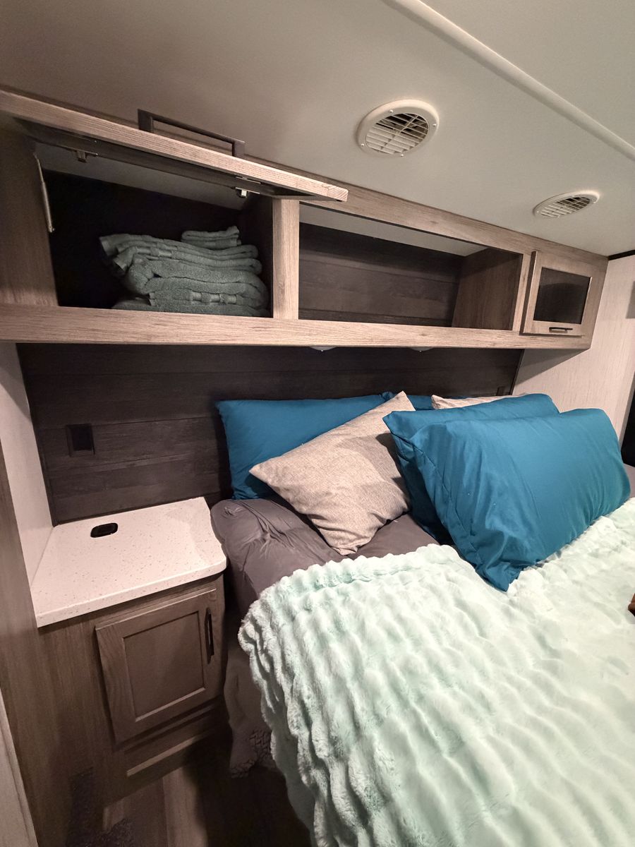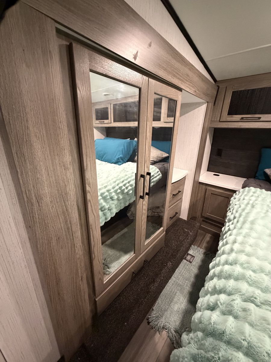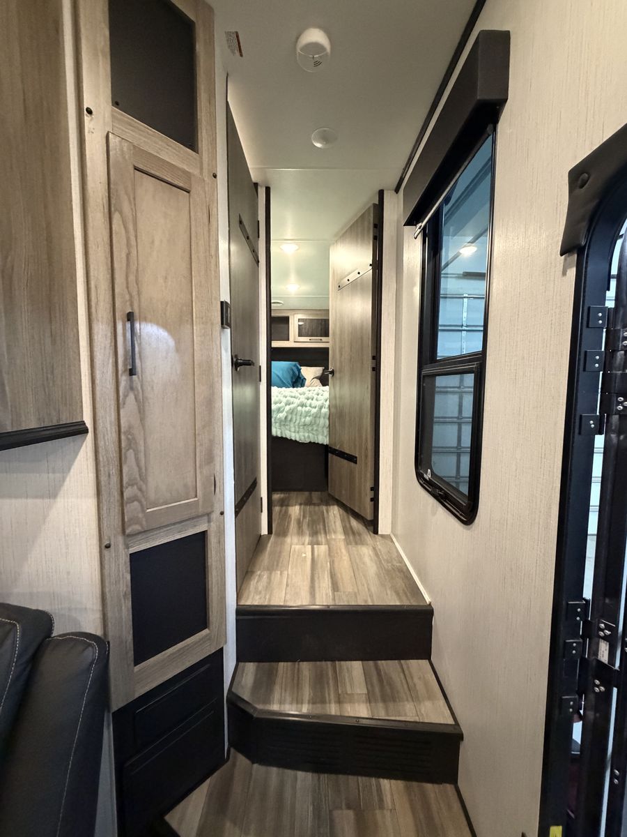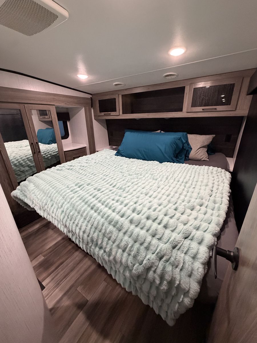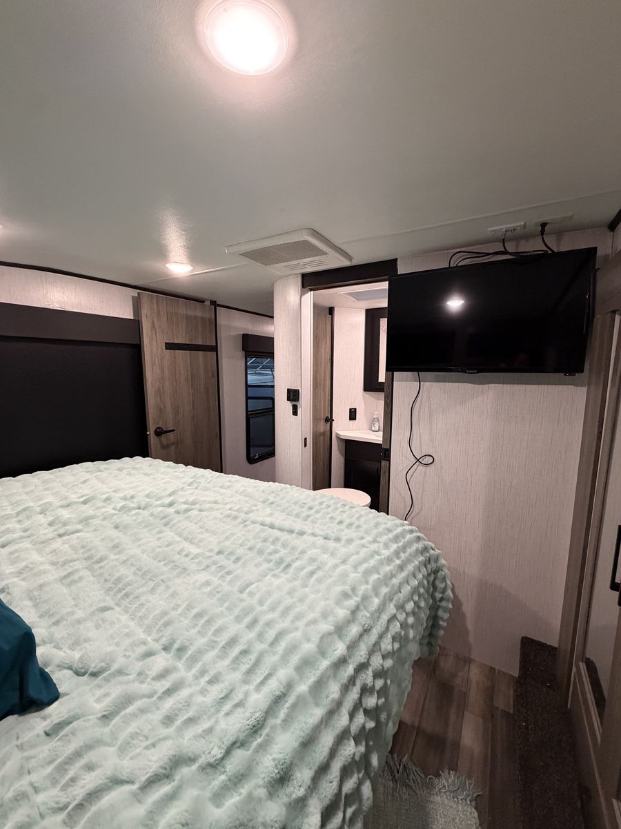 RV includes 2 AC/heat units on individual controls for master bedroom and main living space.