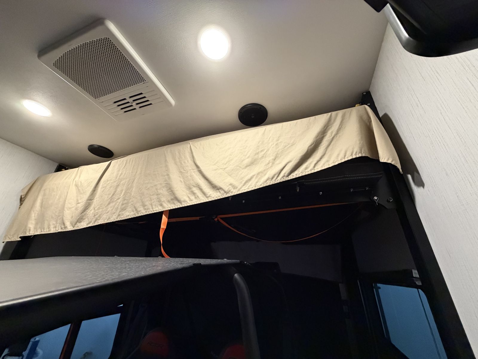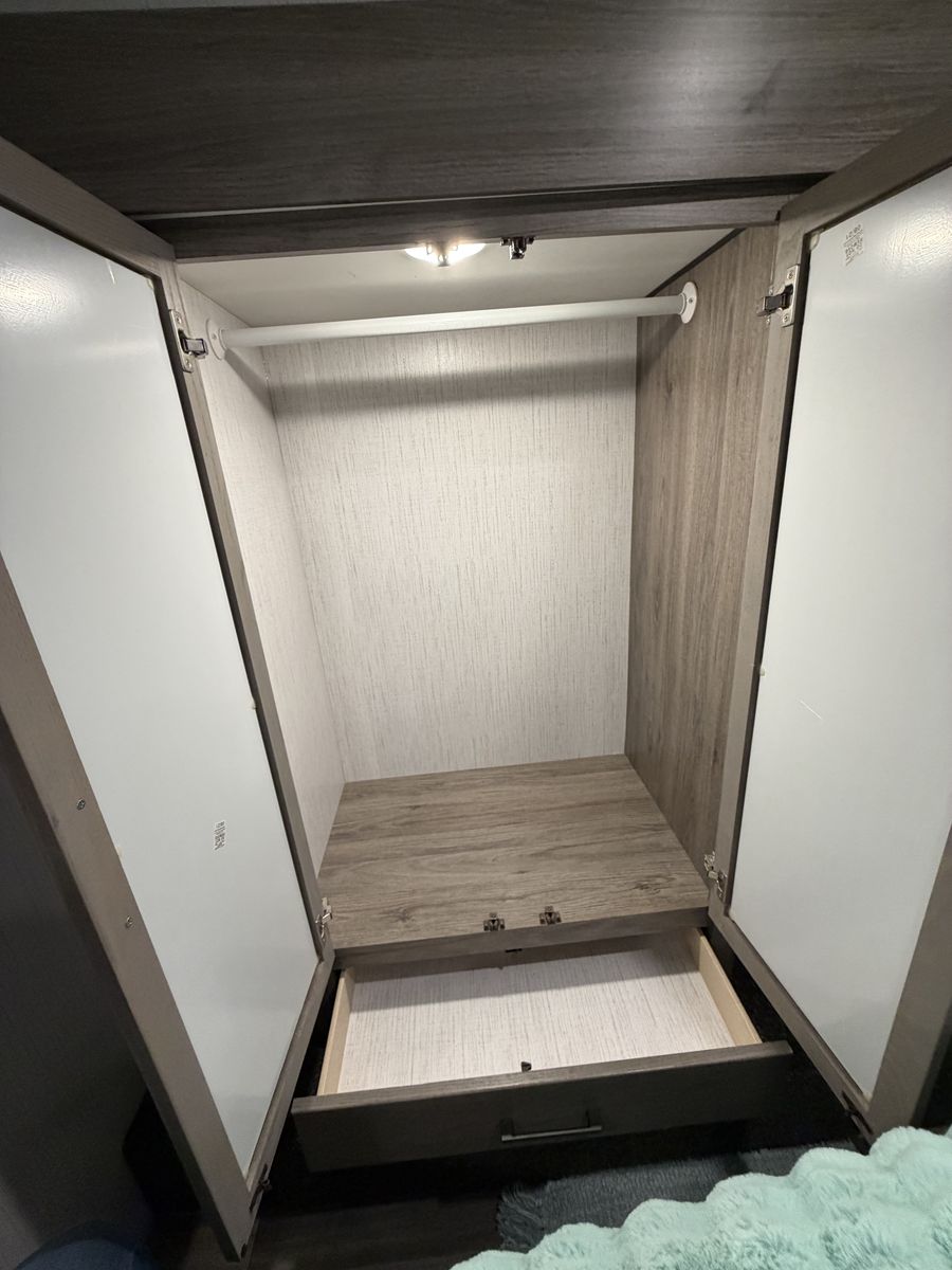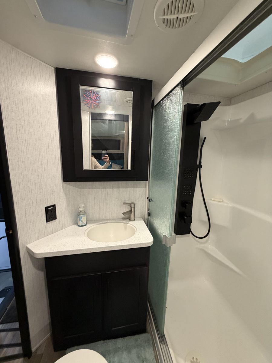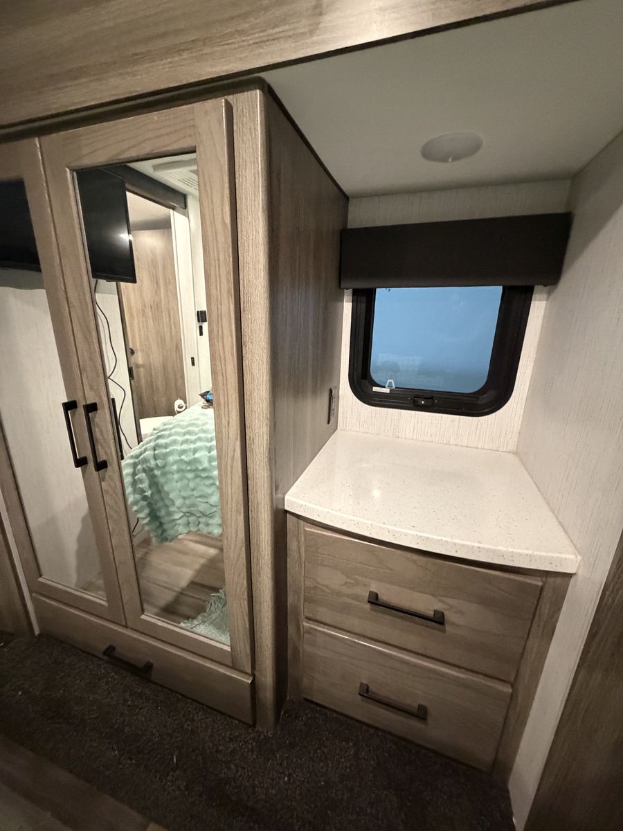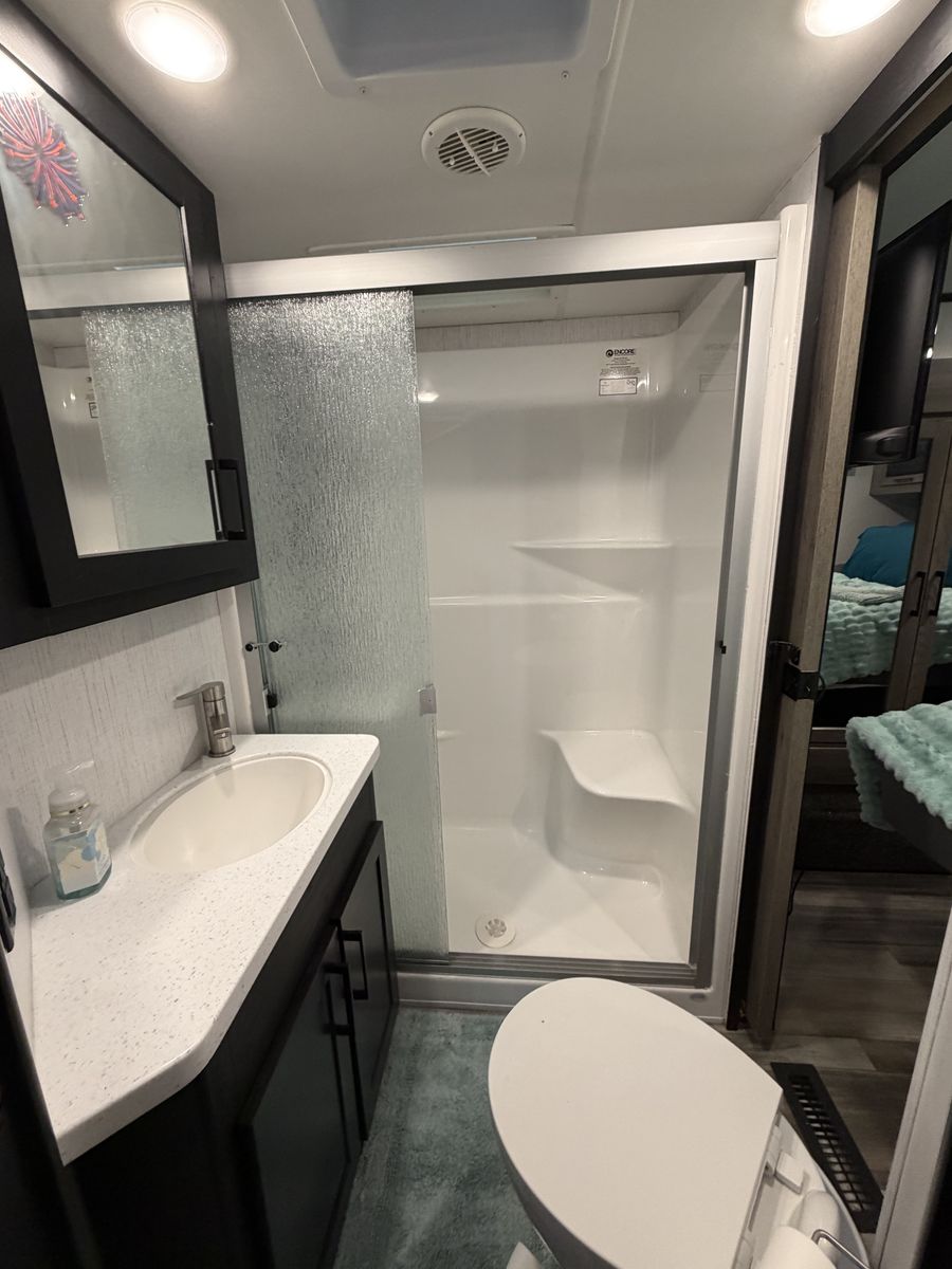 RV includes 2 AC/heat units on individual controls for master bedroom and main living space.