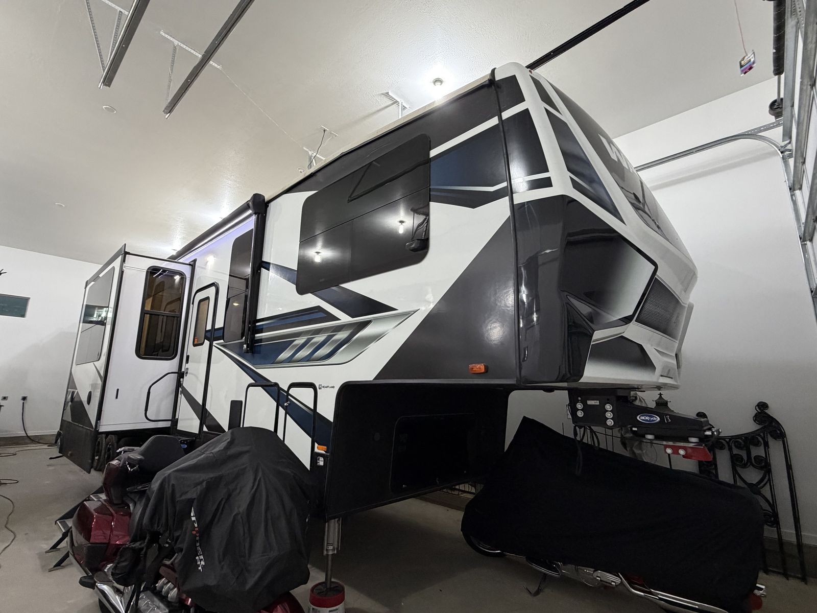 Private seller!!! 2022 Heartland Road Warrior 391W is a 41-45 foot triple-slide toy hauler featuring a 13-foot garage (fits our RZR 4 seater), 1.5 baths, and a front master suite with a king bed. Key features include a loft, dual-entry main bathroom, additional bathroom in garage and a main living area with dual opposing reclining sofas.