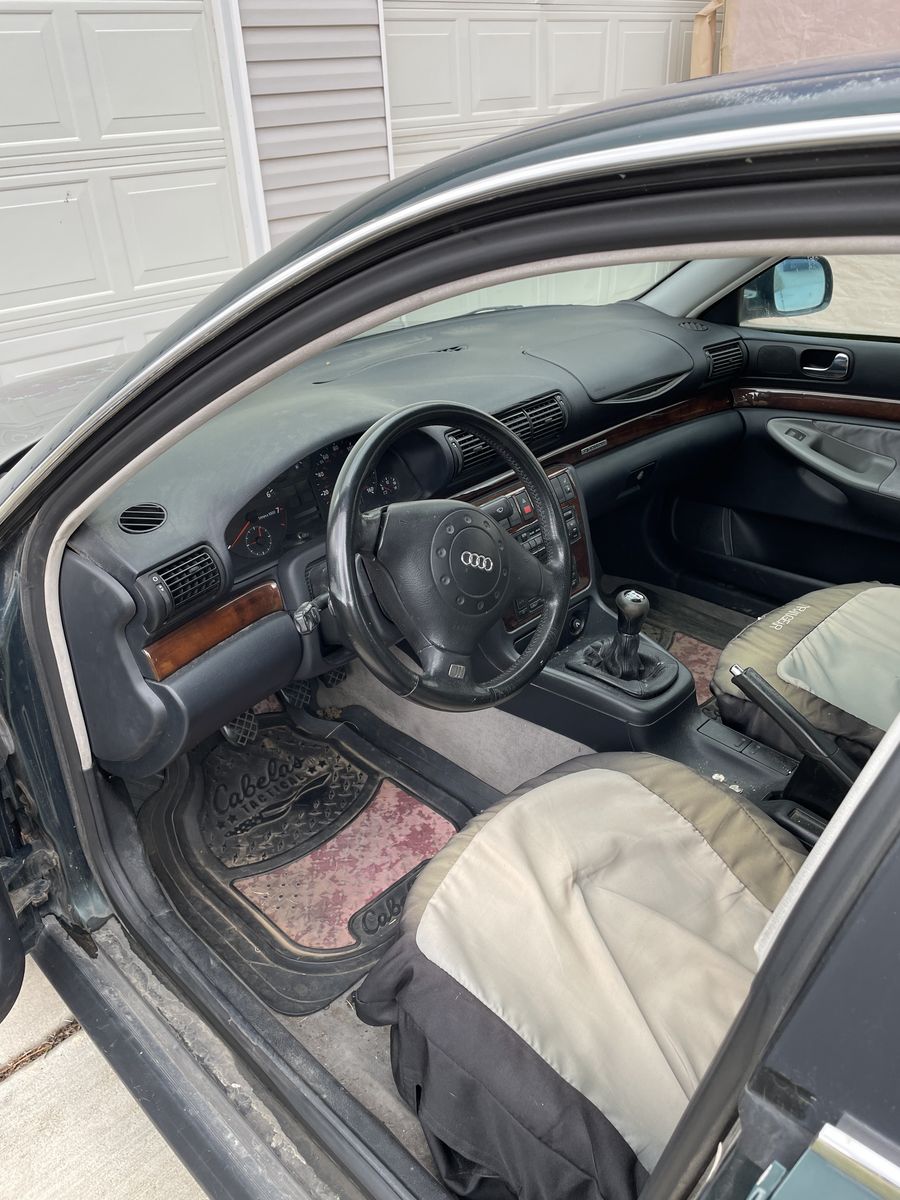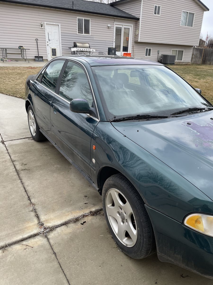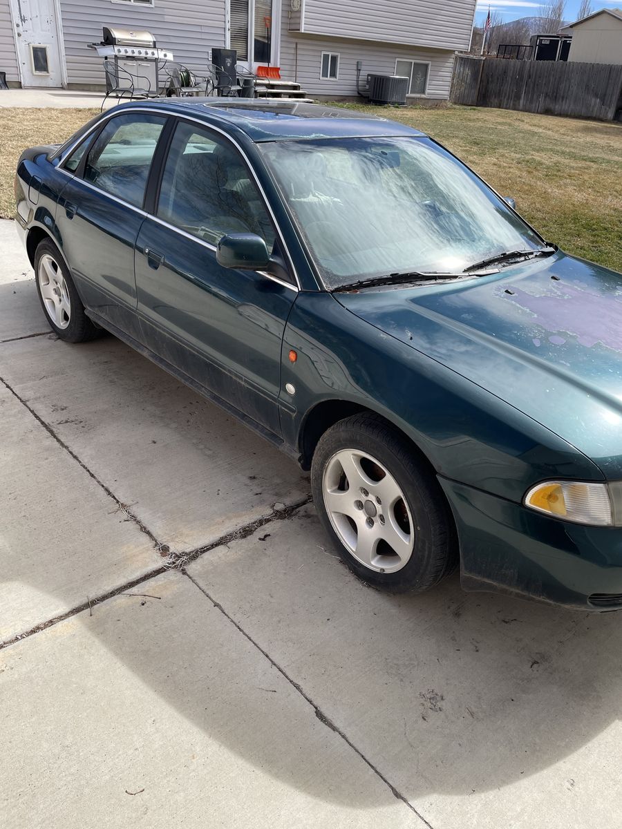 1996 Audi A4 Quattro 5 speed. I did a lot of work when I purchased 5 years ago. Water pump ,timing belt , all front seals and belts. Fuel pump, both front window regulator, all 4 brake pads and rotors. I used car for 2 and 1/2 years for 6000 miles. Car has sat since. I was able to get car started but running rough. Will need to be towed. First year A4 with 2.8 v6.$1200.00