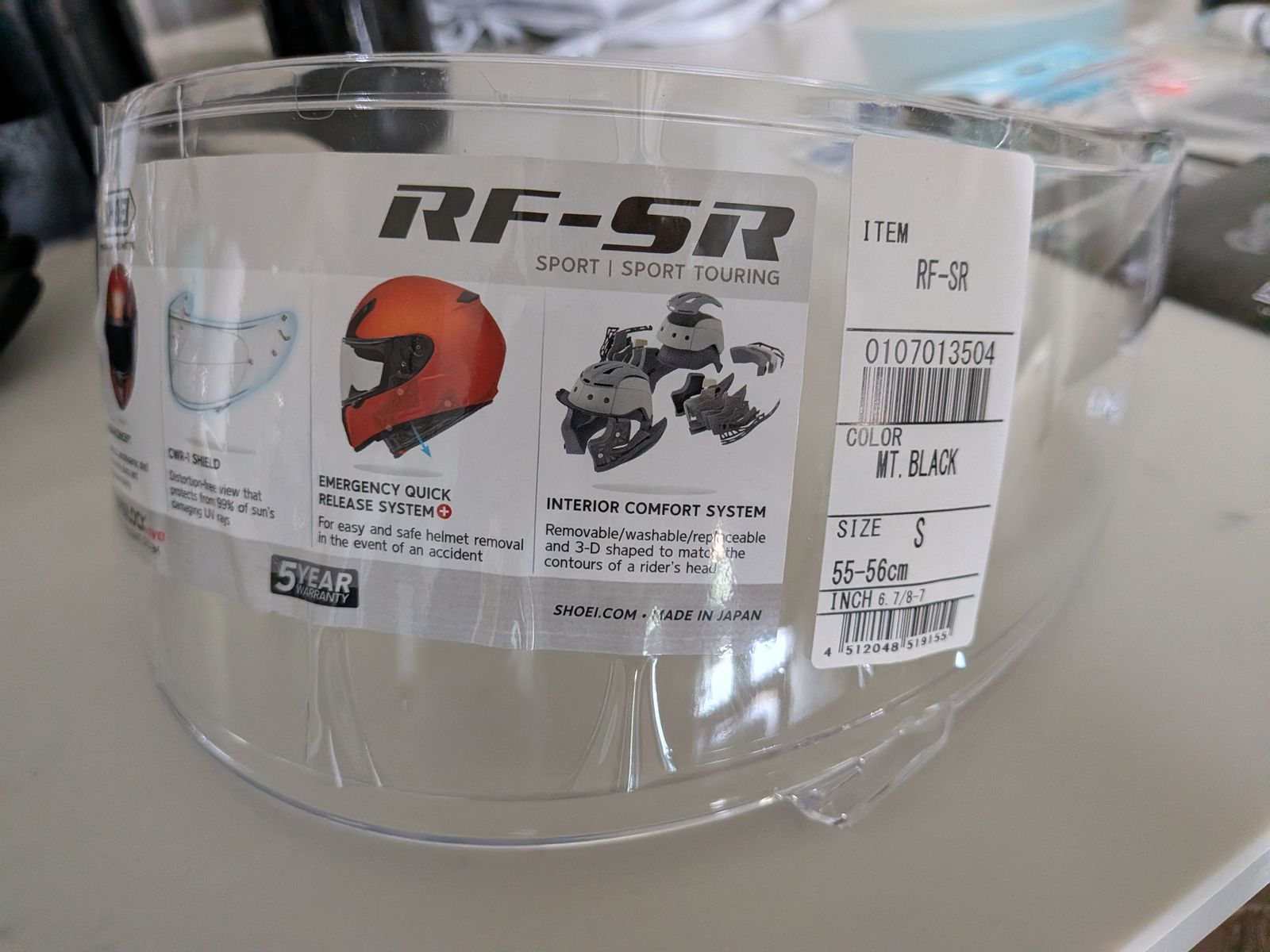 VenmoA brand new, black, Shoei motorcycle helmet model RF-SR in size Small, with a bunch of extras! This helmet comes with the original visor, manufacturer parts, storage bag, and manual, as well as a transition lens (currently attached to the helmet), small motorcycle gloves (also new), reflective safety decals, and a Utah riding map.