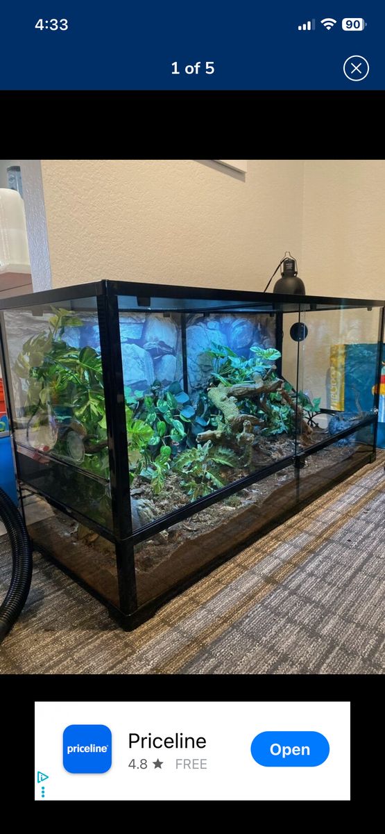It’s basically new, and in perfect condition. Has bioactive substrate alive with spring tails and isopods. Comes with all decorations, water bowl, hides and more. With two UVB stripe laps and a hood heat thermostat lamp. All with new bulbs. Both doors lock and has two sections up top that lock and come off for easy access. Has two healthy and very active Garters in there. One is a adult Blue eastern garter. Dm for more information.