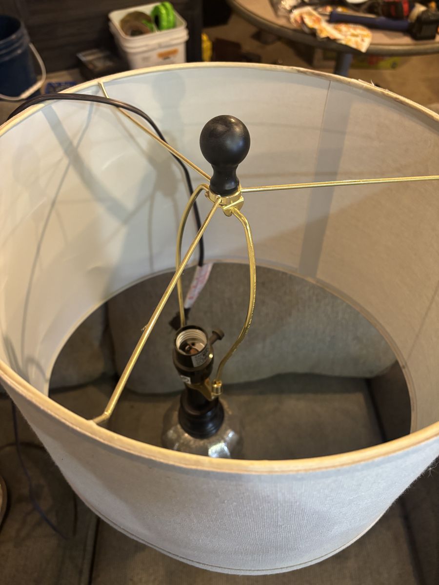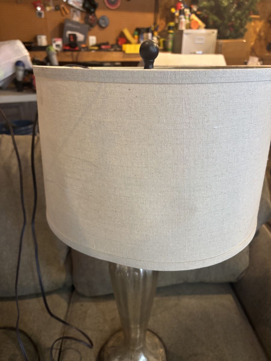 table lamp with a methacrylate base and a shade made of stretched thread (Includes both lamps)