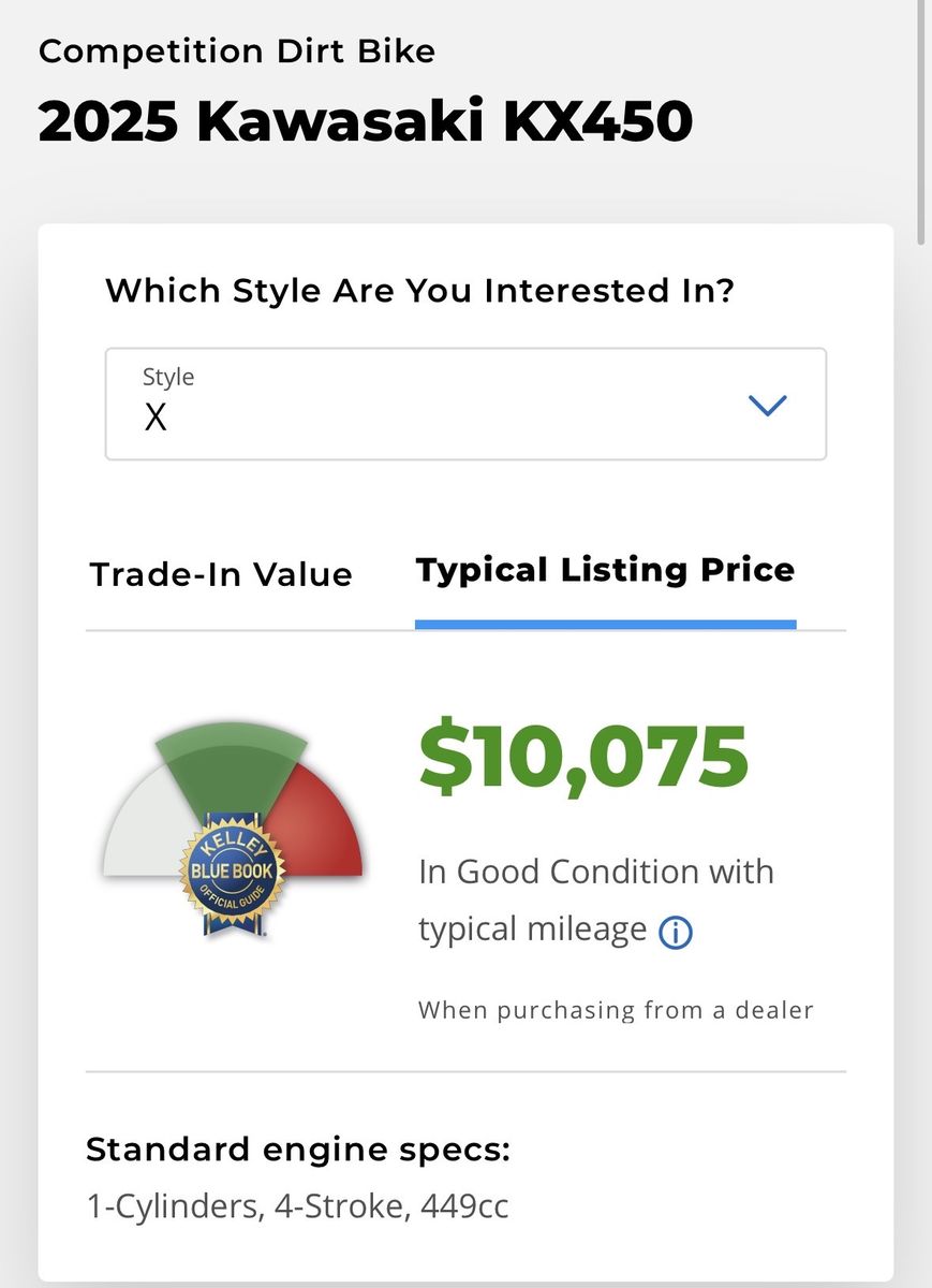 Is a good running bike and has less than 10 hours on it just decided I wanted to get a side by side instead. Asking for what I owe on it bought new in November of 2025 Has a couple of small things Cycra handle bar guards Odi grip donuts Mx14 Has a Dunlop mx14 on it right now but I the stock tire as well. J Runs and drive good. Asking $9500 obo