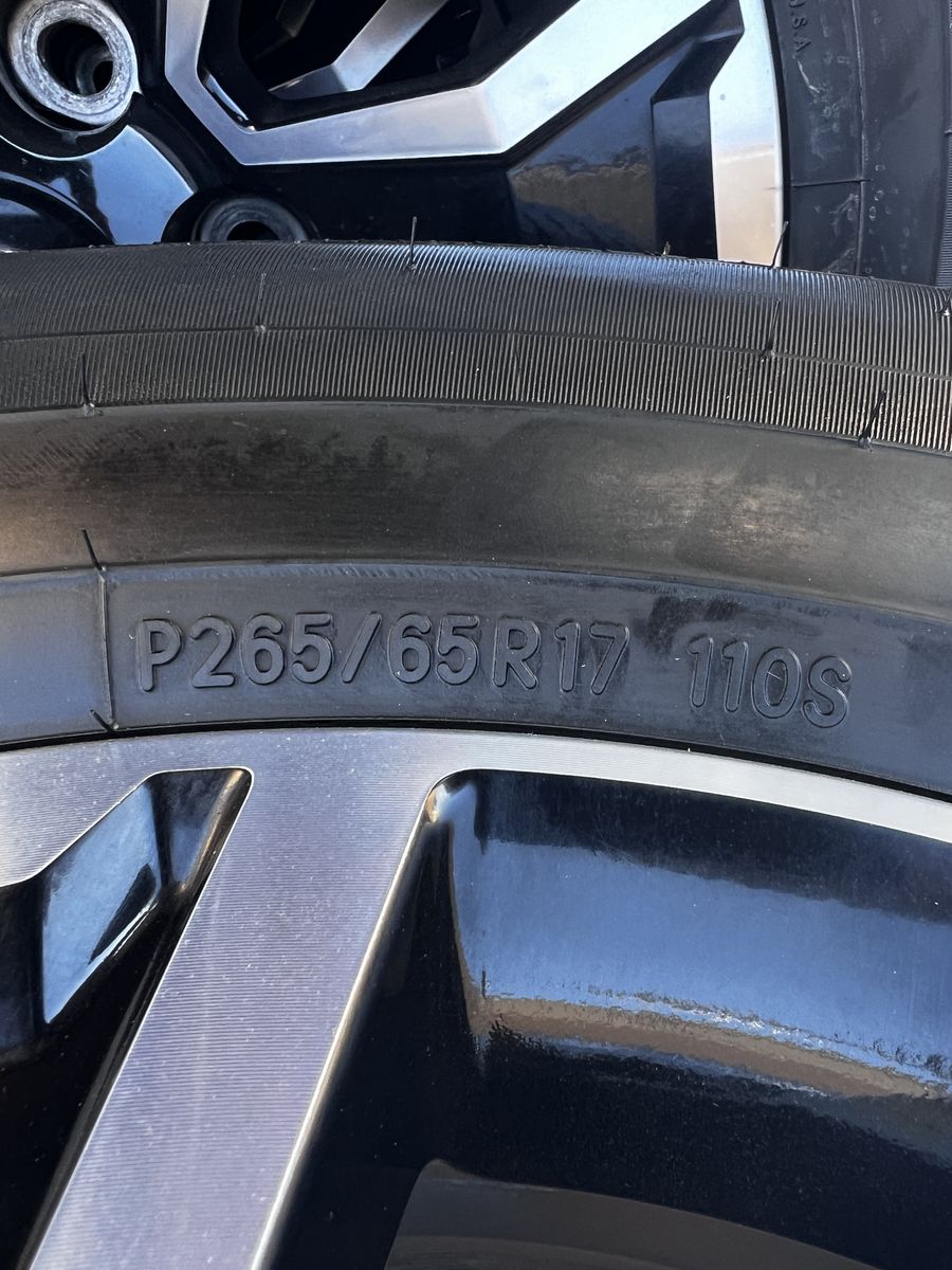 VenmoTacoma 17" with Toyo Open Country A30's. Wheels have zero curb rash. Tires have 13K miles on them with minimal wear. Overall excellent condition. 265/65R17