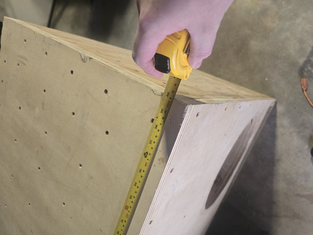 CashAppJust like the title says it is, no frills dual 18 sub box. Dimensions are in the pictures of the outside, has a 4 layer baffle and 2 layers everywhere else. Dont know what it is tuned to but it plays low really well. Was able to squeeze a 152 db @34hz with 4k watts with two Fi HC 18s out of this. Car space is more important to me now than having this behemoth take up my 2nd and 3rd row. She's hefty, you'll need to bring something with enough space to fit it, and probably another person to help you unload it when you get to where youre going with it. No trades, make me a reasonable offer. Theres $450 in material alone into the box.