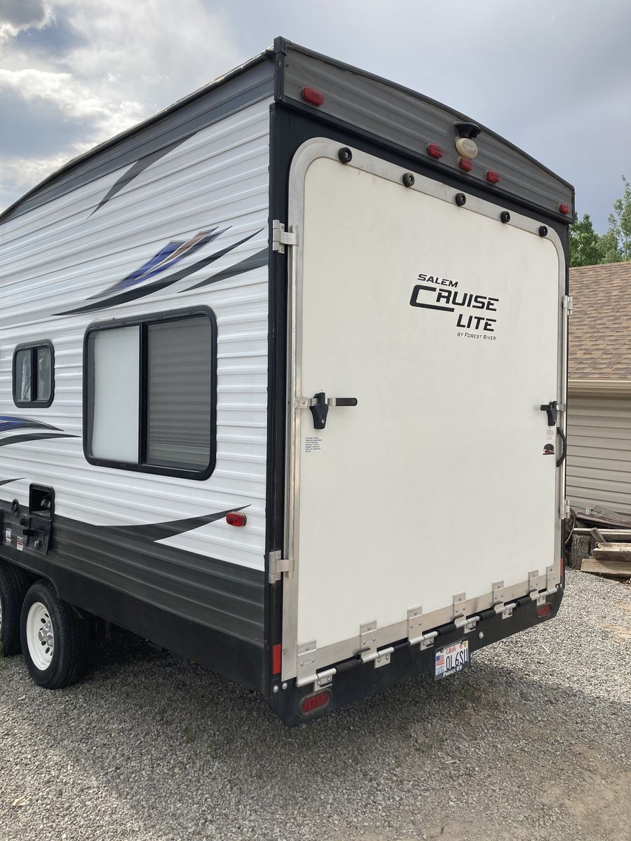 2017 22 ft Forest RiverSalem light toy hauler. It is very well equipped. It has Solar panel, electric and propane refrigerator, sleeps six,has good sized bathroom. Two propane tanks, power jacks and ac unit. Just had a new roof installed.