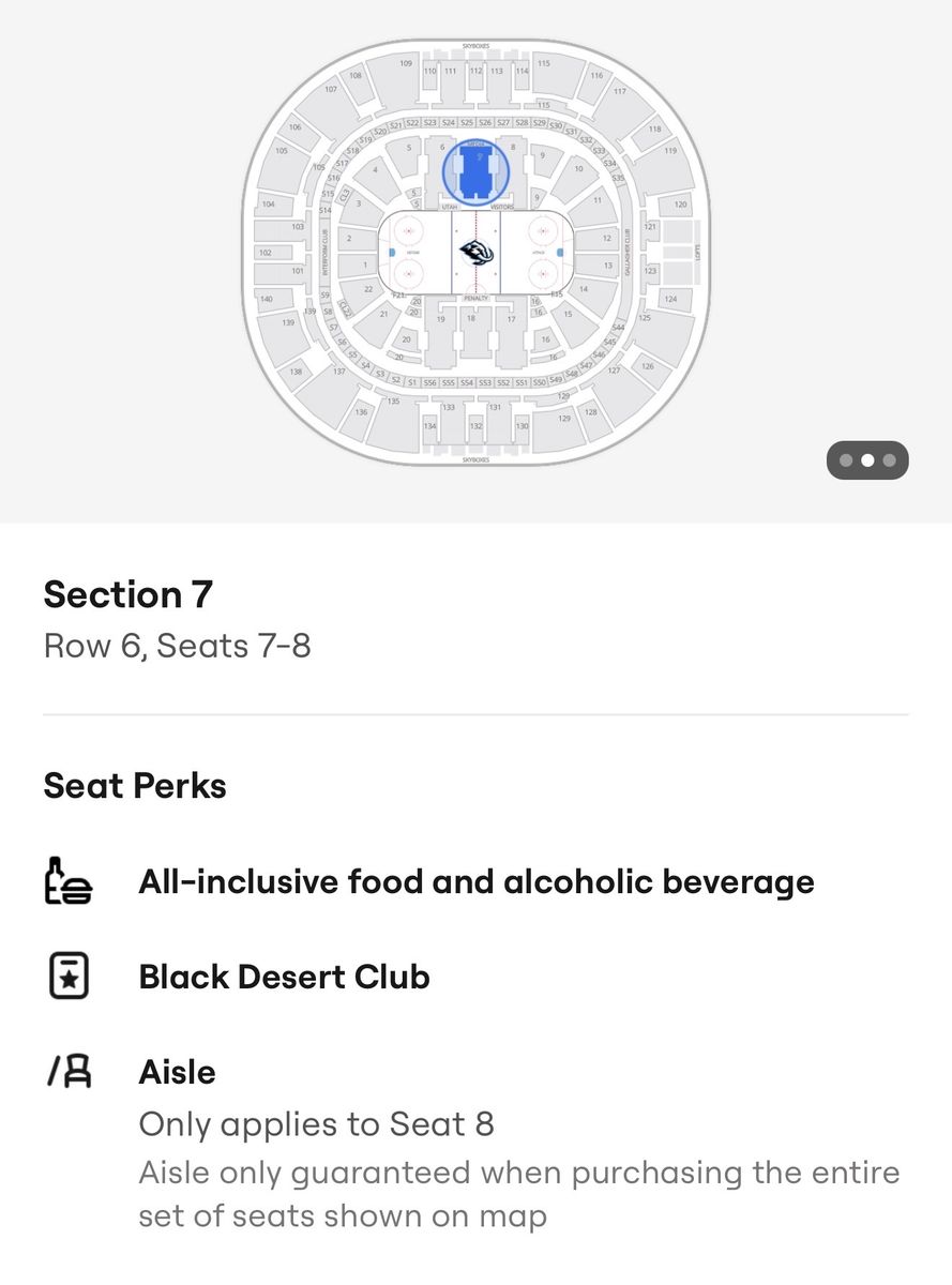 ApplePay03/12 - Utah Mammoth v Chicago Blackhawks !!! Section 7 Row 6 Includes Black Desert Club & Parking