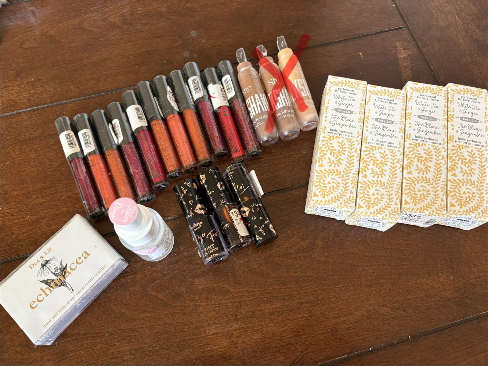 I have a bunch of new hair, lip & beauty supplies. I have a friend that owns a boutique and cleared out unsold products to make room for new things. There are 8 plastic headbands (4 different patterns), 3 peach bow hair clips, 9 soft scrunchies (3 different colors), 11 Nabi glitter lipglosses, 3 Italia lip stains, 1 bar of Echinacea soap, 4 Dot & Lil rice flower perfume sprays, 1 Dot & Lil white tea & ginger perfume spray. They are all new with price tags except the white tea & ginger spray because it was a tester bottle for customers to try. The price tags go from $2.95 to $33.95 each. I’m asking $35 for all of it together. See my other ads for jewelry, artwork, home decor and more.