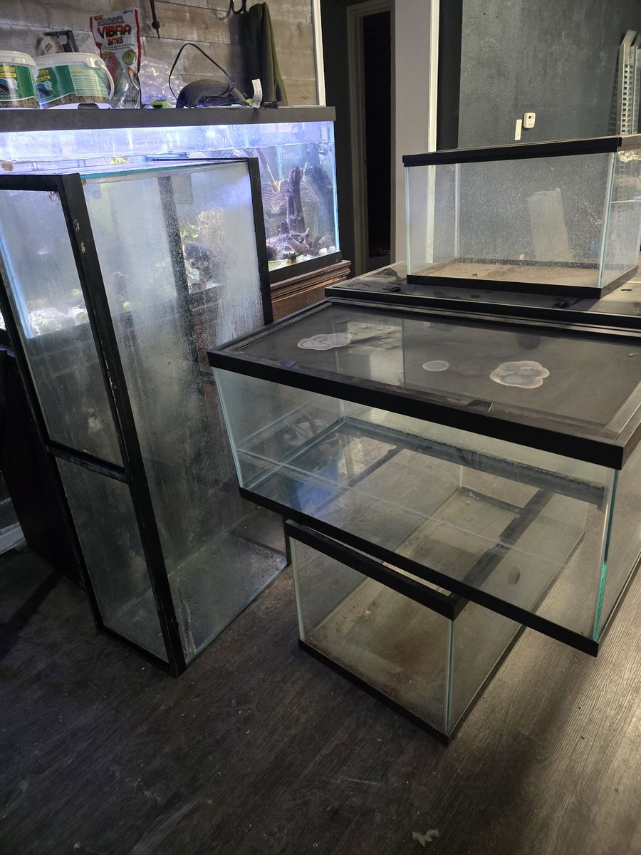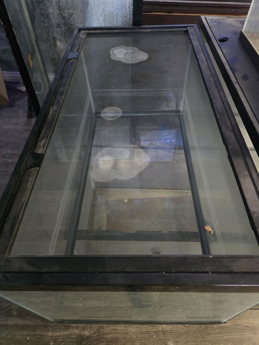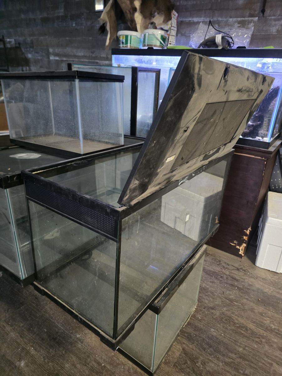 $50-55 gallon fish tank- I would redo the silicone to make sure it's water tight. It's sat for about 5 years.