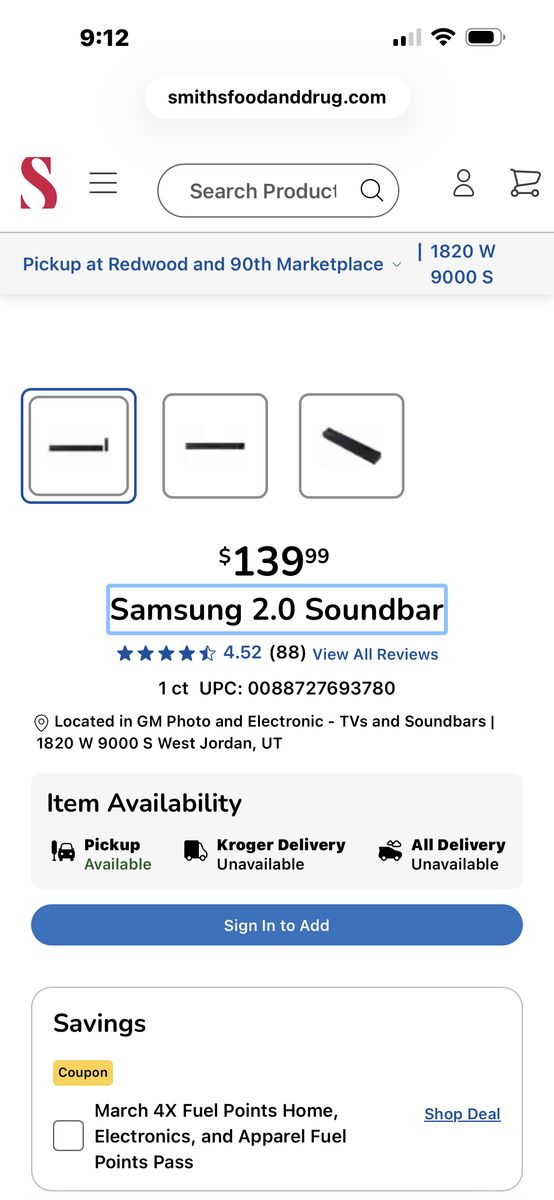 Nice Samsung 2.0 soundbar with power cord! ! Used, a bit dirty, but still works great! ready to come home to you! Won’t last long at this price! Great overall condition ! This exact model is on smith’s marketplace right now for 139.99 as shown in photos! Don’t pay retail prices, call Dustin now instead at 801-205-3404, I need it gone!
