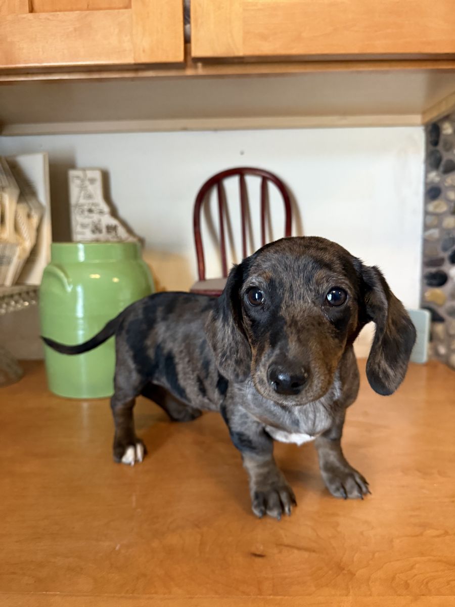 VenmoAdorable purebred miniature dachshund not akc. She will be around 12ish lbs. She was born November 20th (15 weeks). She have 2 sets of shots and dewormer. We’ve had this line of dogs for over 20 years now and they are one of the smartest and most lovable dogs. Super easy to train when you build a connection with them. Females Grey dapple $1500 obo