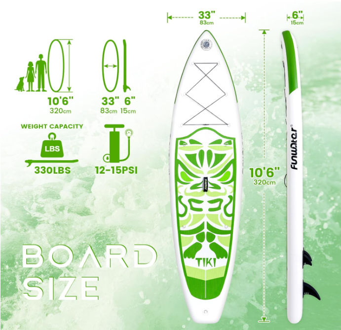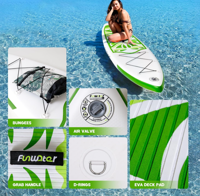 ZelleExcellent PerformanceWe use military grade PVC material, thickened brushed material makes the paddle board stronger and more durable and can be fully used. The V shape of the head of the paddleboard reduces the resistance between the paddleboard and the water, making the paddleboard smoother during travelling. The square design of the tail improves the stability of the paddleboard and provides safety for your water sports