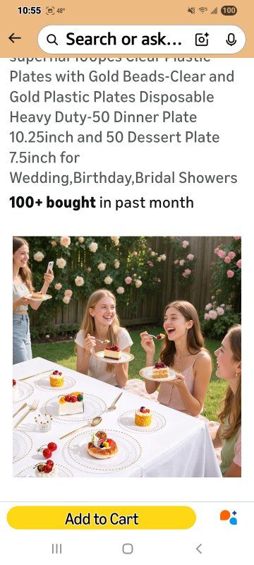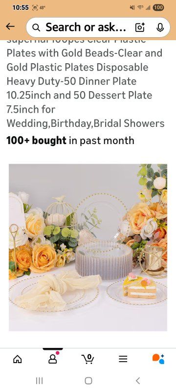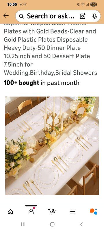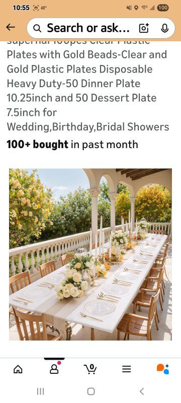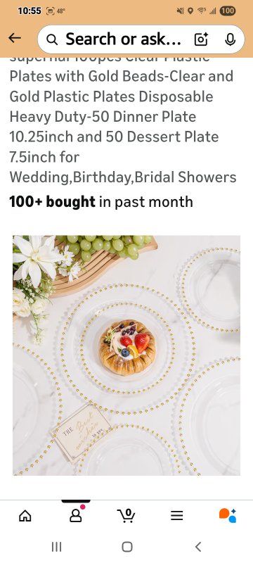 Premium Set:Get 50 clear dinner plates(10.25inch),50 clear dessert plates(7.5inch),100pcs clear plastic plates sufficient quantity to meet the needs of your daily life and various gatherings,adding more charm to your dining table Timeless Beaded Design:The Plastic plates intricate gold beaded edging,match with a transparent base color,Blending vintage charm with modern practicality,unique and elegant.Clear disposable plates for dinner plates attracts people's attention to themselves and fit under salad bowls,soup bowls and main dish plates to avoid food spills and keep your table clean Excellent Quality:The clear plastic plates is made of heavy duty plastic,the product itself is centered in thickness,not bulky or light.The clear and gold plastic plates is sturdy,it is not easy to be broken and bent out of shape.And plates disposable heavy duty are made of food-grade plastic,BPA-free and non-toxic.You and your family and friends can use it with confidence Convenient To Use:Our clear and gold plastic plates are made of food-grade plastic,you can throw away the disposable plates directly after the party,will not pollute the environment and save cleaning time;or you can wash these clear disposable plates and then dry them for multiple uses Perfect For Any Occasions:This clear plastic plates makes the perfect addition to you weddings,party,anniversaries,Thanksgiving,Christmas,infant baptism,bridal showers,banquets,everyday mealtime,picnics,holiday and formal dinners