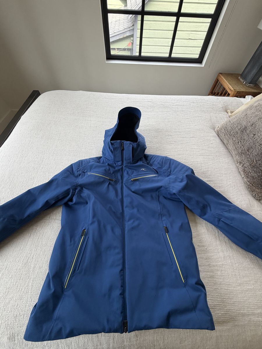 ZelleBlue Kjus men’s medium ski jacket with detachable hood features zippered pockets galore (plethora of inside and outside pockets hold everything imaginable!). Like new condition. Retails for ~ $1,100.